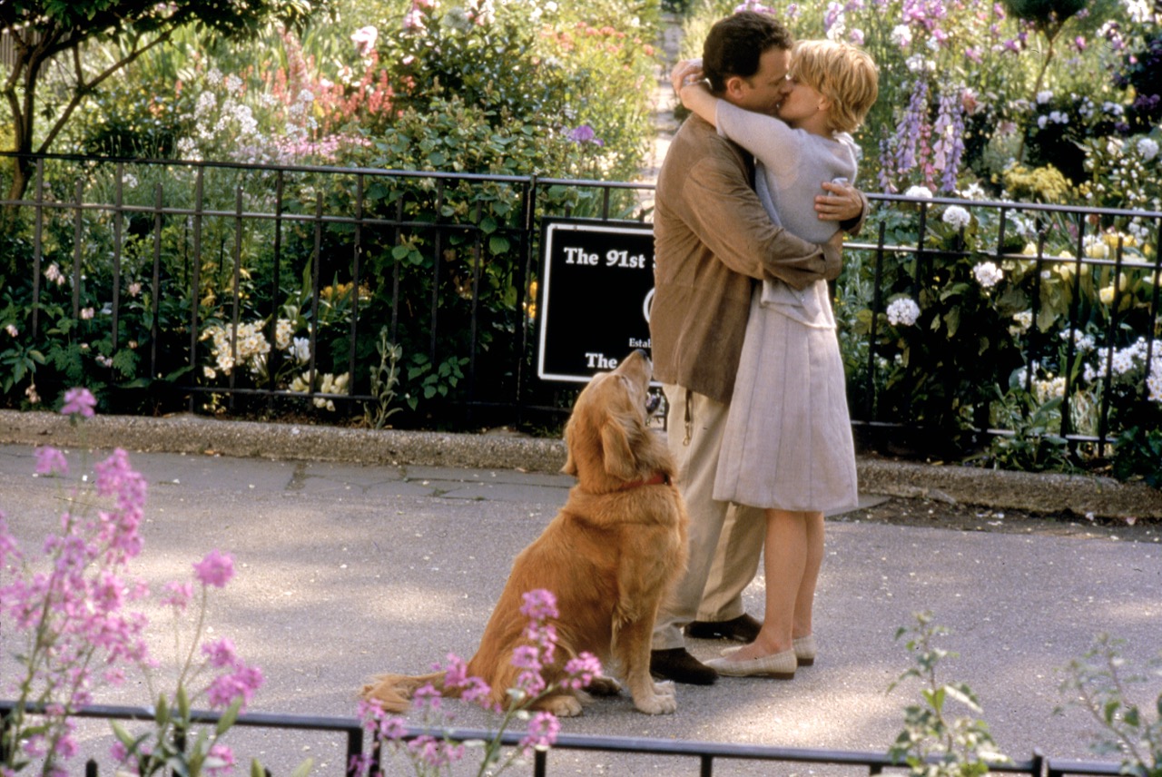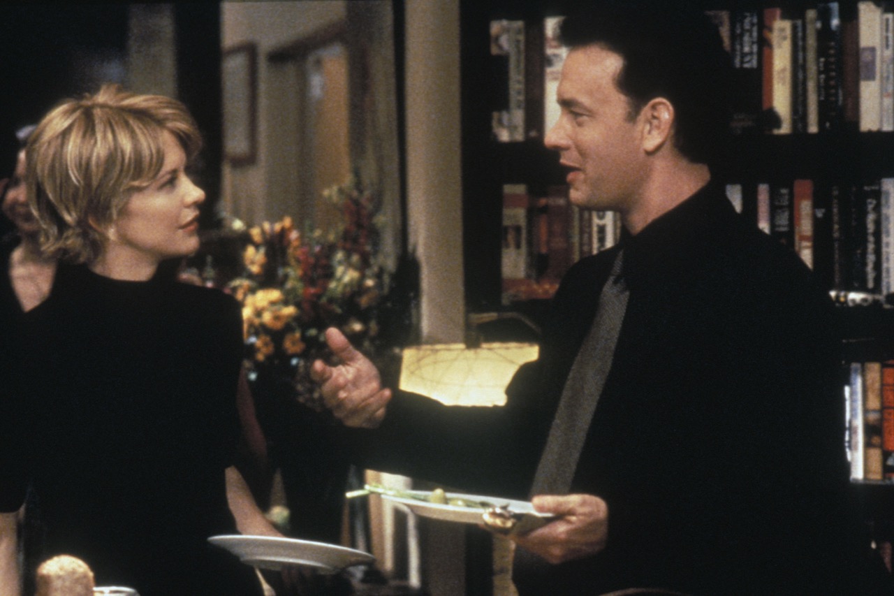 Meg Ryan as Kathleen Kelly and Tom Hanks as Joe Fox in You’ve Got Mail. Image courtesy Warner Bros. and Alamy Stock Photo. © 1998 Warner Brothers. Photo: Brian Hamill.