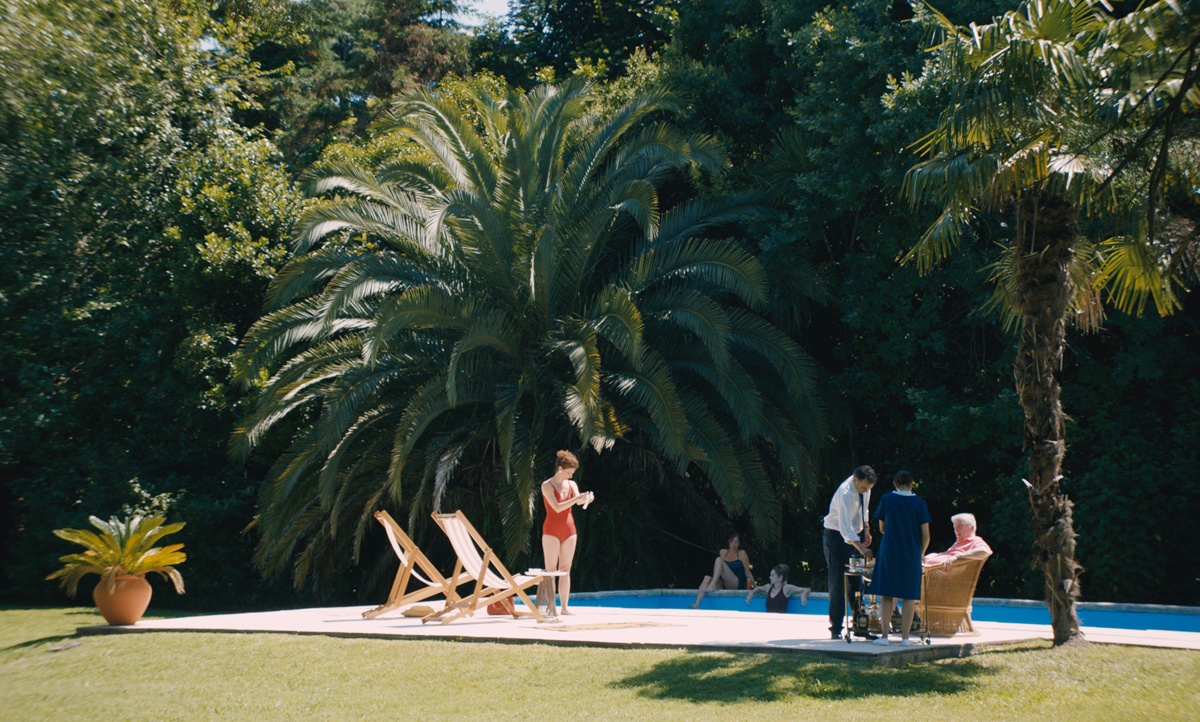 To aid him in his mission of soothing the skittish plutocrats, Yvan’s wife, Inés (Stéphanie Cléau), accompanies him. The financier’s soigné spouse has a gift for extracting useful intel during insipid conversations—about Gstaad, say—with the privileged matrons of Buenos Aires, desultory chats held in vast living rooms or in Hockney-perfect pools. (Rarely without a cigarette, Inés never passes up an opportunity for a languorous swim; water-averse Yvan’s lone concession to leisurewear is to unbutton the top of his white dress shirt.) Playing patrician characters whose life work consists of charming, coaxing, and flattering the likewise wealthy, no matter how vulgar or repugnant, Rongione and Cléau adroitly assume the opacity that is the inexorable result of this kind of relentless performance, donning facades not just while trying to woo the rich but also during private moments. For this couple, the inviolable boundary between outer and inner life has long been eroded.