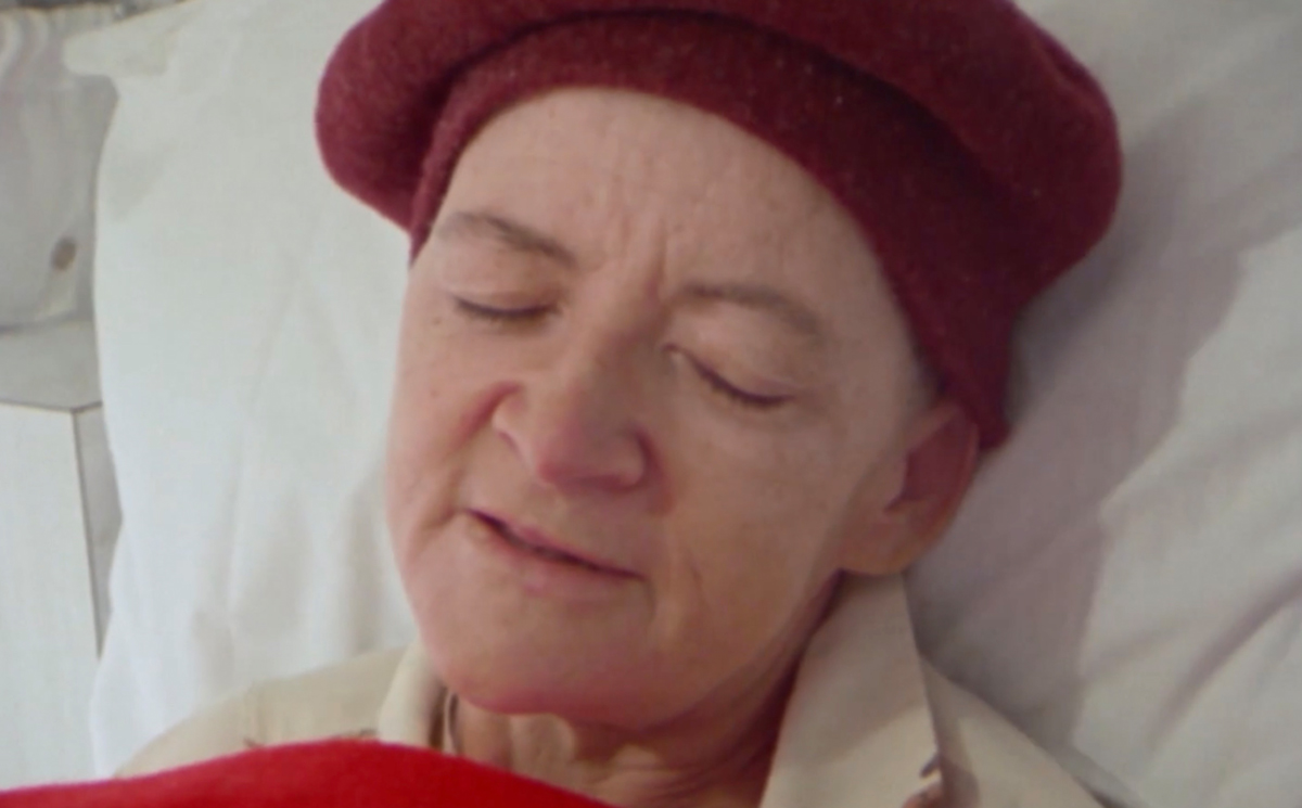 Bill, the youngest of Dying’s three participants—he looks to be in his early thirties—is also the most taciturn. He is eclipsed by his spouse, Harriet, whose despair and rage serve as a stark counterpoint to the composure of those facing their imminent demise. She is prone to rapidly fluctuating emotions—cracking herself up with a private joke one second, weeping the next—and shockingly candid admissions. Essentially, she is impatient for her husband to die: “The longer that this is dragged out, the worse this is gonna be for all of us,” she protests to Bill in his hospital bed. (His nonplussed reply: “Well, whaddya want me to do?”) That “all of us” includes the couple’s two young sons; Harriet is terrified of being widowed when the boys are unruly teenagers. Better that Bill should give up the ghost now, so that she can have sufficient time to find a new husband to ease the burden of parenting adolescents. While Bill, Sally, and Reverend Bryant abide the unendurable with tremendous dignity, Harriet reminds us that the nearness of death also triggers riotous responses: ferocious derangements, wild helplessness.