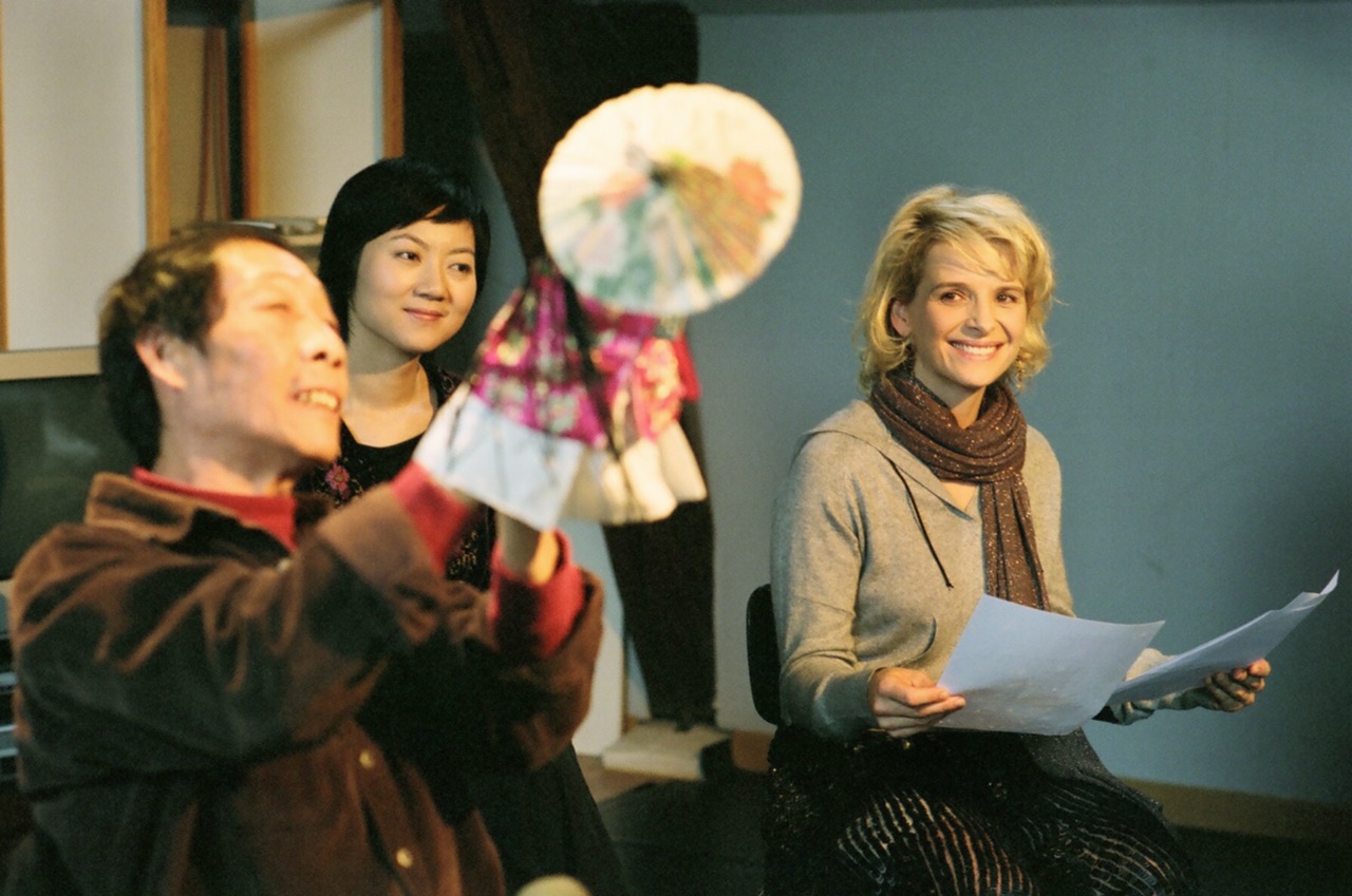 Song Fang (center) as Song and Juliette Binoche (right) as Suzanne in Flight of the Red Balloon. Image courtesy IFC Films.