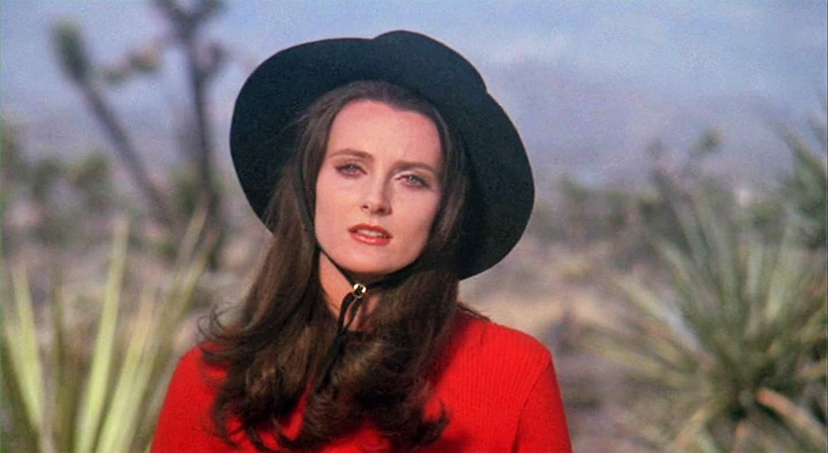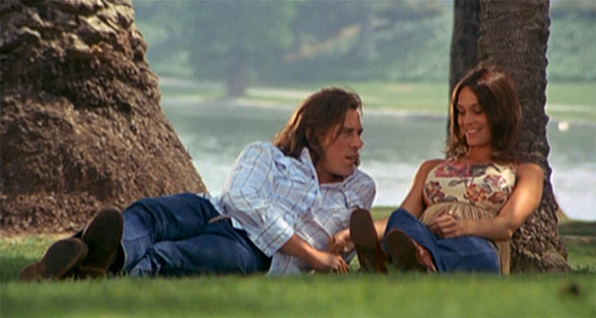 Rothman is one of the finest chroniclers of Southern California’s elysian light and scenery; two of the most transporting sequences in The Student Nurses feature the dreamiest of the foursome, Priscilla (Barbara Leigh), at a love-in in MacArthur Park and, later, at the beach, dropping acid for the first time. Occasionally the visual magnificence of Rothman’s films serves as the star attraction, more than compensating for the often awkward acting, which could most charitably be described as “naïve,” least so as “excruciating.” Michael Blodgett and Sherry Miles, who play Lee and Susan, the young married couple seduced by Diane LeFanu (Celeste Yarnall), the lady bloodsucker of the title in California desert–set The Velvet Vampire (1971), for example, are avatars of anti-charisma; both perform as if they spent too much time with Charlie Manson on Spahn Ranch. Yet the retina-searing crimson décor of the chamber from which Diane spies on her prey anticipates the sinister sanguine hue of the Red Room in Twin Peaks, and the film’s lysergic dream sequences seem art directed by de Chirico.