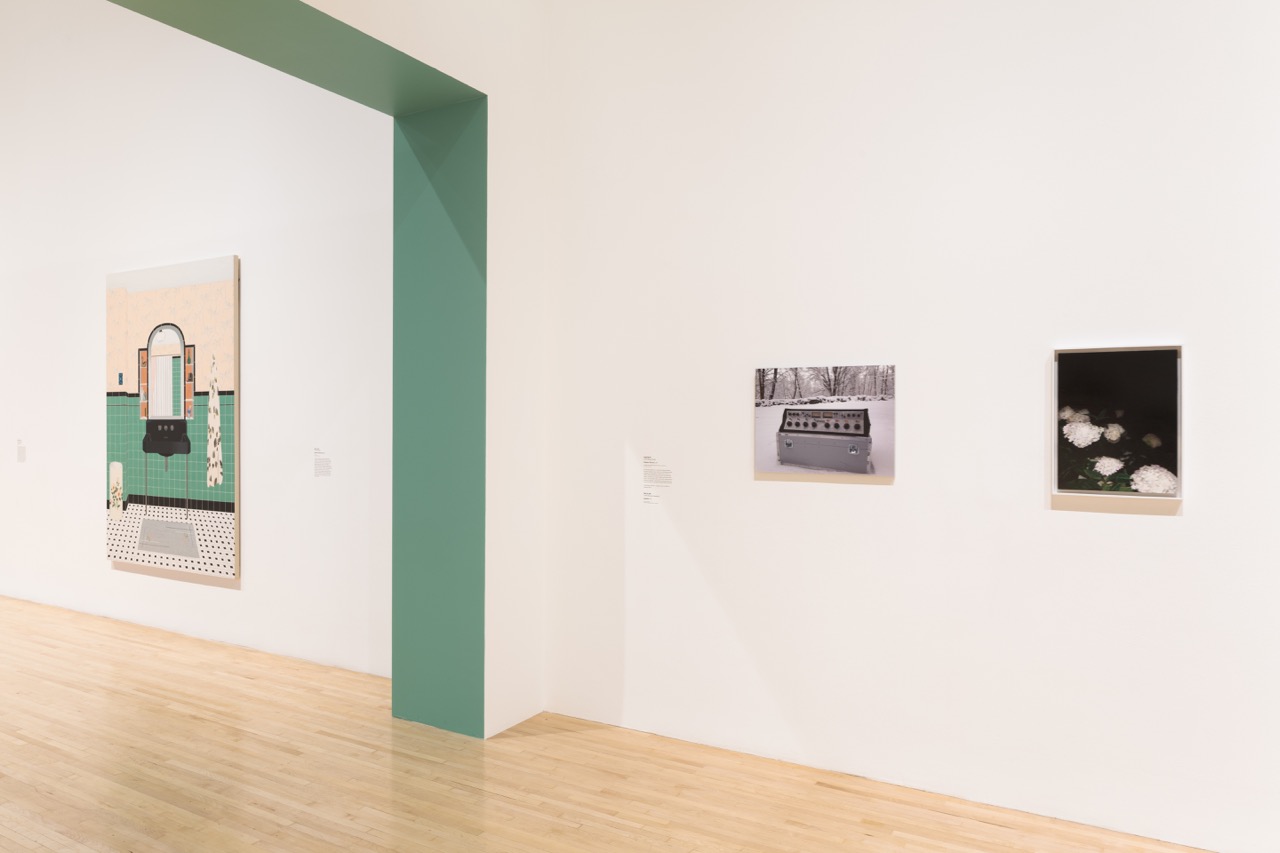 Alongside the joys of daily life, there’s an awareness, especially in the exhibition’s later galleries, of how the present keeps hardening into the past. In The Selected Gifts, 1974–2015 (2015–16), Roni Horn photographs presents she’s received from friends against stark white grounds, the camera converting personal ephemera—books, a pair of Flintstones figurines, a stereoscopic photo of the moon—into artifact.