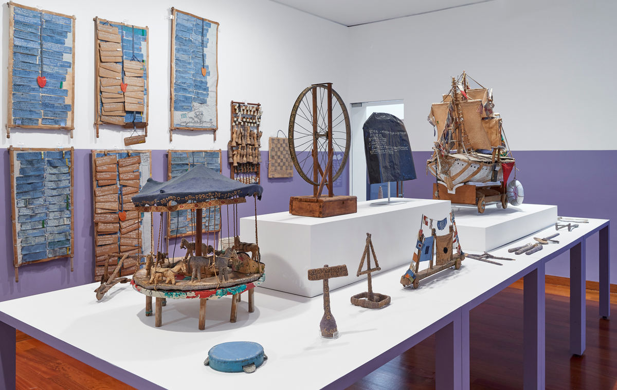 Bispo do Rosario: All Existing Materials on Earth, installation view. Courtesy Americas Society / Council of the Americas. Photo: Arturo Sánchez. Pictured: Untitled [Navios de Guerra (War ships)], (detail) no date.