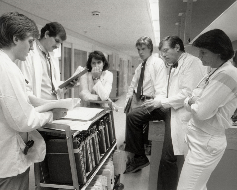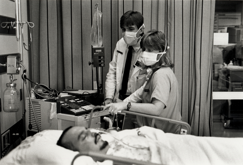 As we follow the director’s arc from the savagery of his first film, 1967’s correctional-facility exposé Titicut Follies, to the ode to epicurean sublimity that is 2023’s Menus-Plaisirs—Les Troisgros, he gradually seems to emerge from behind the camera, no longer the unobtrusive observer but a character as rich and self-contradicting as any of his subjects. His passions and temperament are detectable in what he continually devotes attention to; his worldview, though rarely made explicit, drifts from disgust and despair to something like optimism. Among the dozens of newly restored titles showcased in Film at Lincoln Center’s current Wiseman program, many of the highlights come from the 1980s and ’90s, a period when the outrage of his earliest films gave way to a more slippery understanding of morality—one that makes it possible to describe him as both a misanthrope and a humanist. Near Death stands tall among these exquisitely ambivalent works; despite the clinical atmosphere of scenes like the aforementioned postmortem, this six-hour, black-and-white odyssey through ICU purgatory is also about a shared effort to sustain sympathy—both that of the healthcare workers, who endlessly debate the ethics of prolonging a patient’s life until loved ones can make peace with the inevitable, and that of the families, who try to keep their faith in the doctors’ cautiously hedged, sometimes comically circular explanations.