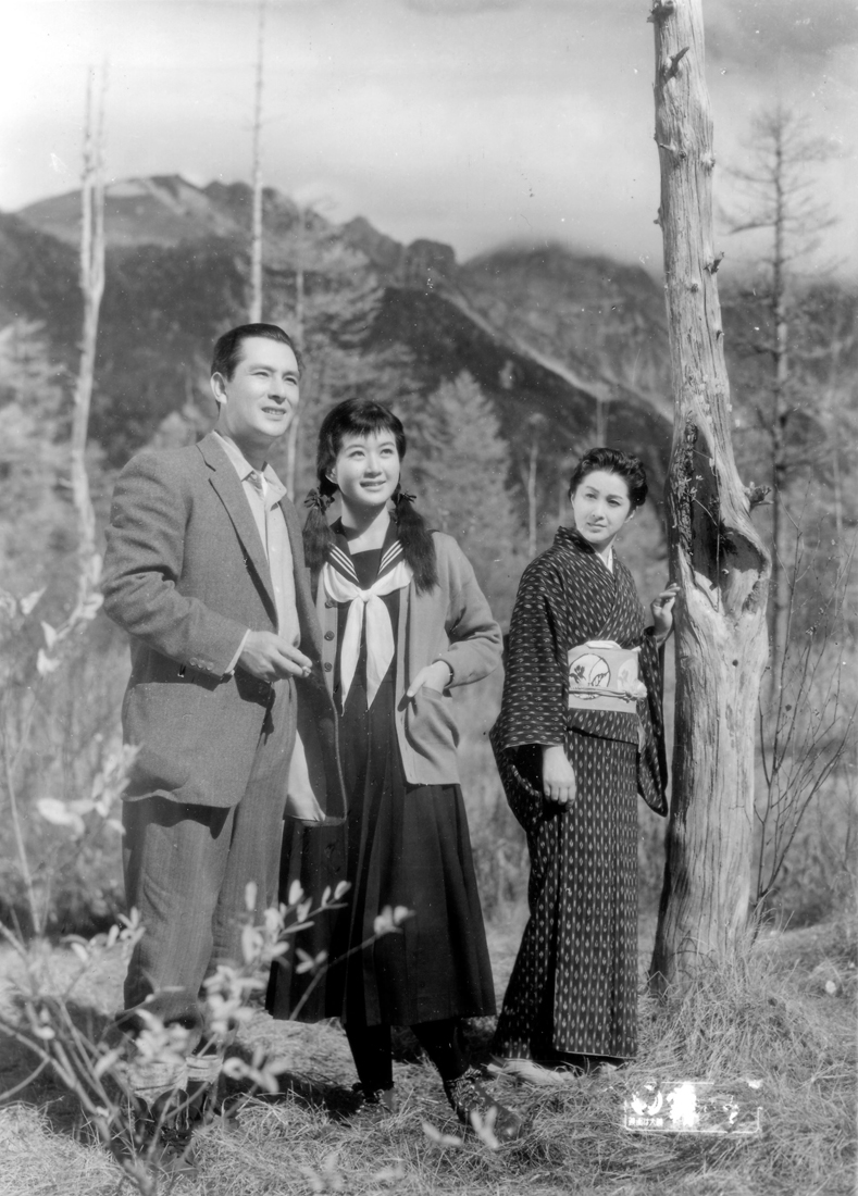 Ken Uehara as Kazuhiko Onuma, Yoshiko Fujita as Yuko, and Michiyo Kogure as Tsuruko in Sound in the Mist. © KADOKAWA.