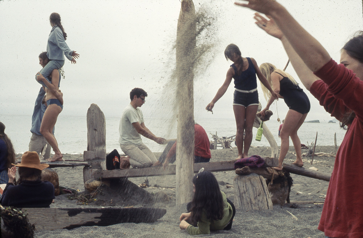 Anna Halprin and Lawrence Halprin, Experiments in Environment Workshops, Participants in the Sea Ranch Driftwood Village Rebuilt event, Sea Ranch, California, 1968. Courtesy University of Pennsylvania, the Architectural Archives.