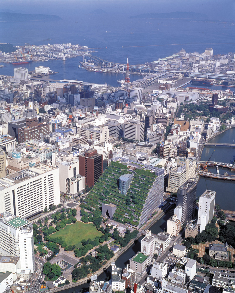 Emilio Ambasz, Prefectural International Hall, Fukuoka, Japan, aerial view, 1990. Courtesy Collection Emilio Ambasz. Photo: Hiromi Watanabe.