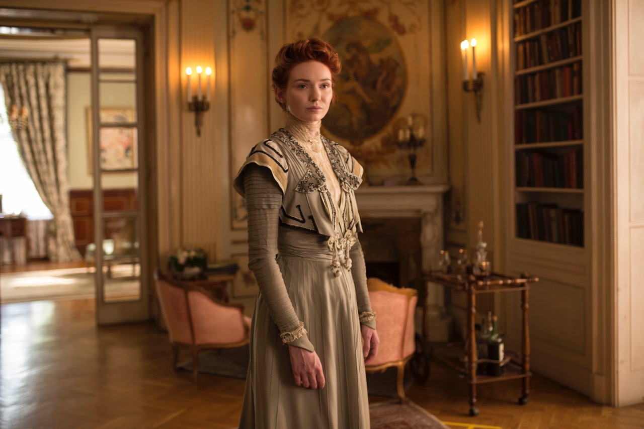 This is one of those movies in which the characters speak English in British accents but we are given to understand that they are in fact speaking French in French accents. The device works delightfully in the writing sequences: we hear Colette say the word “snakes” in voice-over as we watch her pen trace des serpents. But things fall apart when other inflections enter the fray. Colette’s first lady lay, Georgie (Eleanor Tomlinson, English herself), is a gold-digging Louisiana transplant, and Tomlinson’s mangled attempt at long Southern vowels ruins the illusion faster than a baby bump at a debutante ball.