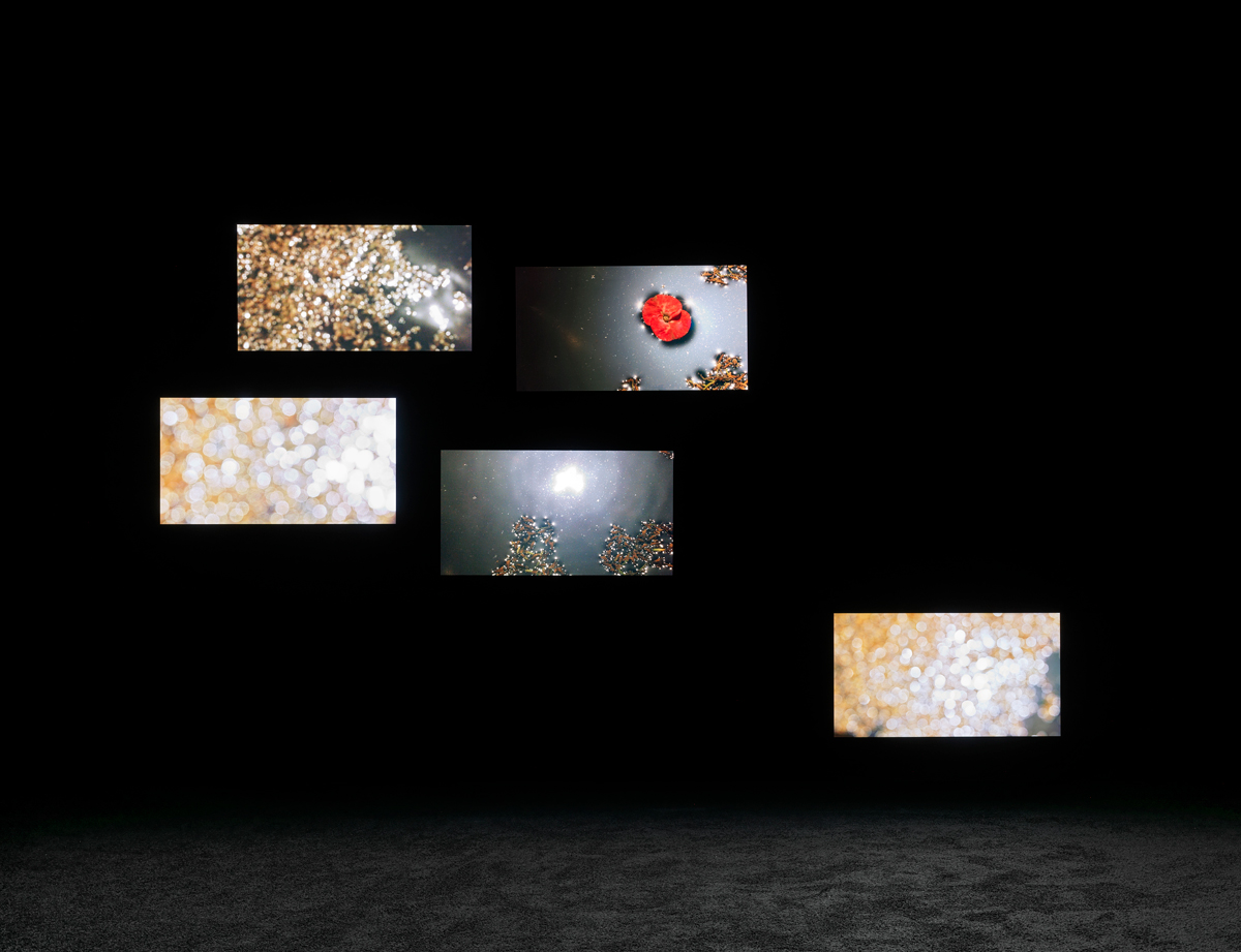 Amar Kanwar: The Peacock’s Graveyard, installation view. Courtesy the artist and Marian Goodman Gallery. Photo: Alex Yudzon. Pictured: The Peacock’s Graveyard, 2023 (still). Digital video installation, seven screens, dimensions variable, 28 minutes 16 seconds.