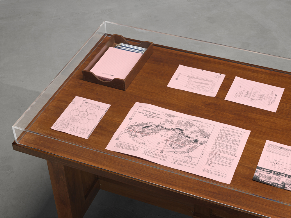 American Artist: Shaper of God, installation view. Courtesy Pioneer Works. Pictured: Octavia E. Butler Papers: mssOEB 1-9062: Local Documents, 2025; and Octavia E. Butler Papers: mssOEB 1-9062: Maps, 2025.