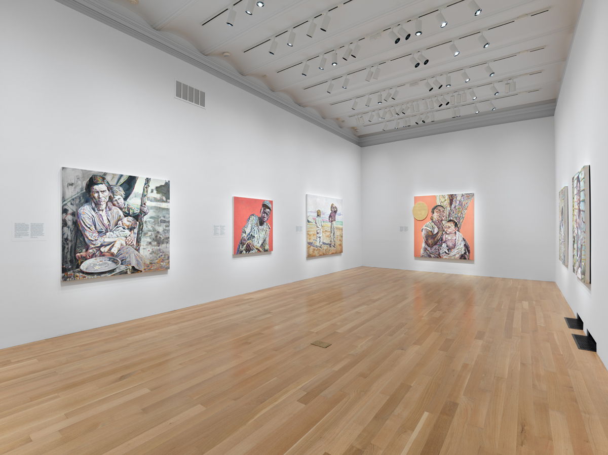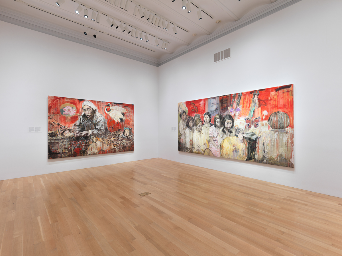 Hung Liu: Portraits of Promised Lands, installation view. Courtesy National Portrait Gallery. Pictured, left: Hung Liu, Refugee: Woman and Children, 2000.