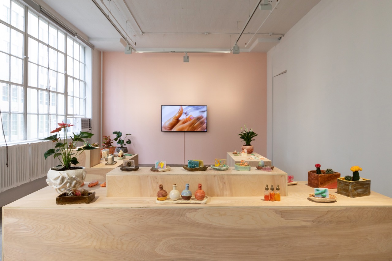 Ilana Harris-Babou drew public attention and critical praise in the most recent Whitney Biennial for works like Reparation Hardware (2018). In it, she took on the role of the creative director in a brand-lifestyle video, discussing the ways in which she sought to devise a stylish aesthetic that honored the history of slavery—“Their liberation was handcrafted,” she deadpanned. Such spot-on political satire played the fantasies offered by high-end home-furnishing companies against the reality of the injustices that have long produced those fantasies, including the occlusion of labor, the fetishization of troublesome histories, and the appropriation of marginalized cultures. Now, in her first solo outing at the Hesse Flatow gallery, Harris-Babou continues her fascination with aspirational lifestyles, turning her focus to self-help and wellness—overlapping discourses that seem to have found their apotheosis in Gwyneth Paltrow’s Goop brand and Marianne Williamson’s recent run for the Democratic nomination.