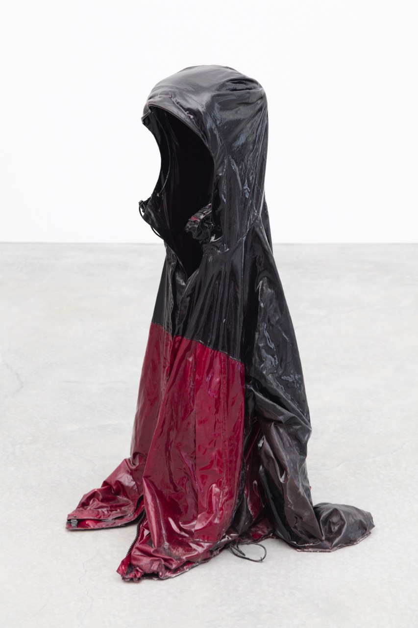 Kevin Beasley, Untitled (. . . just watch), 2015. Nautica rain jacket and resin, 37 × 38 × 20 inches. Image courtesy the artist and Casey Kaplan Gallery. Photo: Jean Vong. © Kevin Beasley.