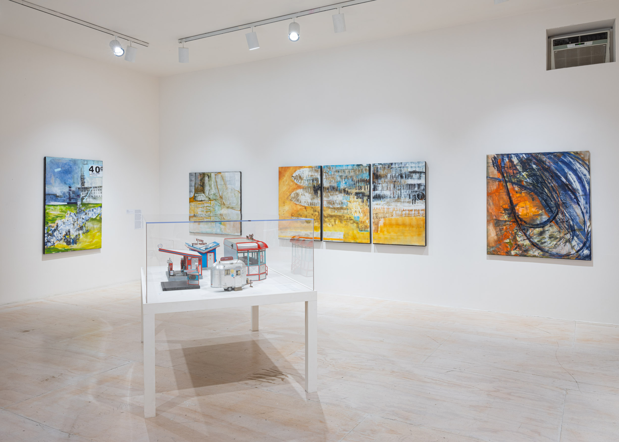 Marking Time: Art in the Age of Mass Incarceration, installation view. Pictured, hung on the wall, from left to right: Jared Owens, The Go Back, 2020; The Corner Cell, 2019; Ellapsium: master & Helm, 2016; Oculus, 2014. Image courtesy MoMA PS1. Photo: Matthew Septimus.