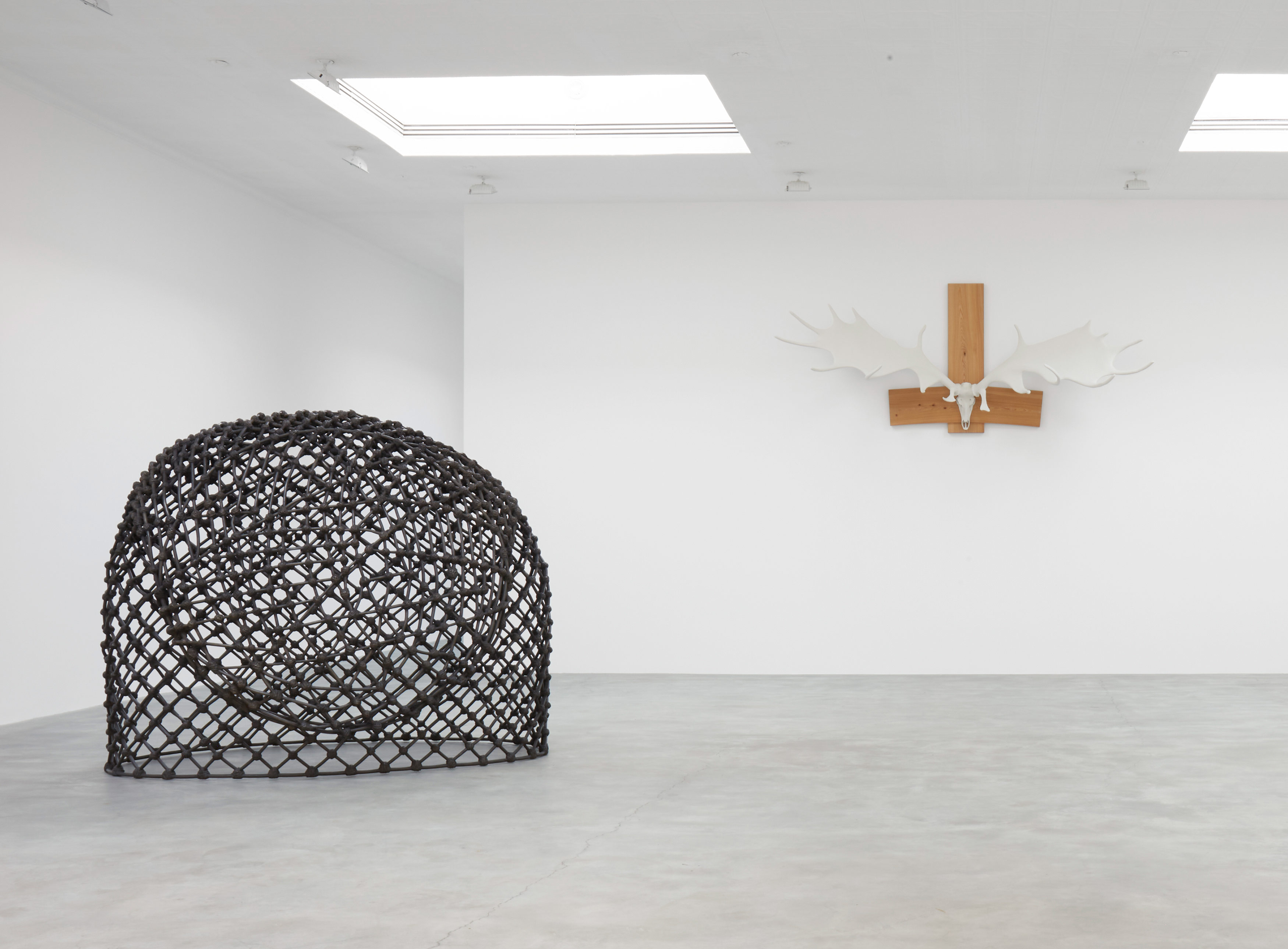 Martin Puryear, installation view. Courtesy Matthew Marks Gallery. Pictured, left to right: Aso Oke, 2019, and Hibernian Testosterone, 2018.