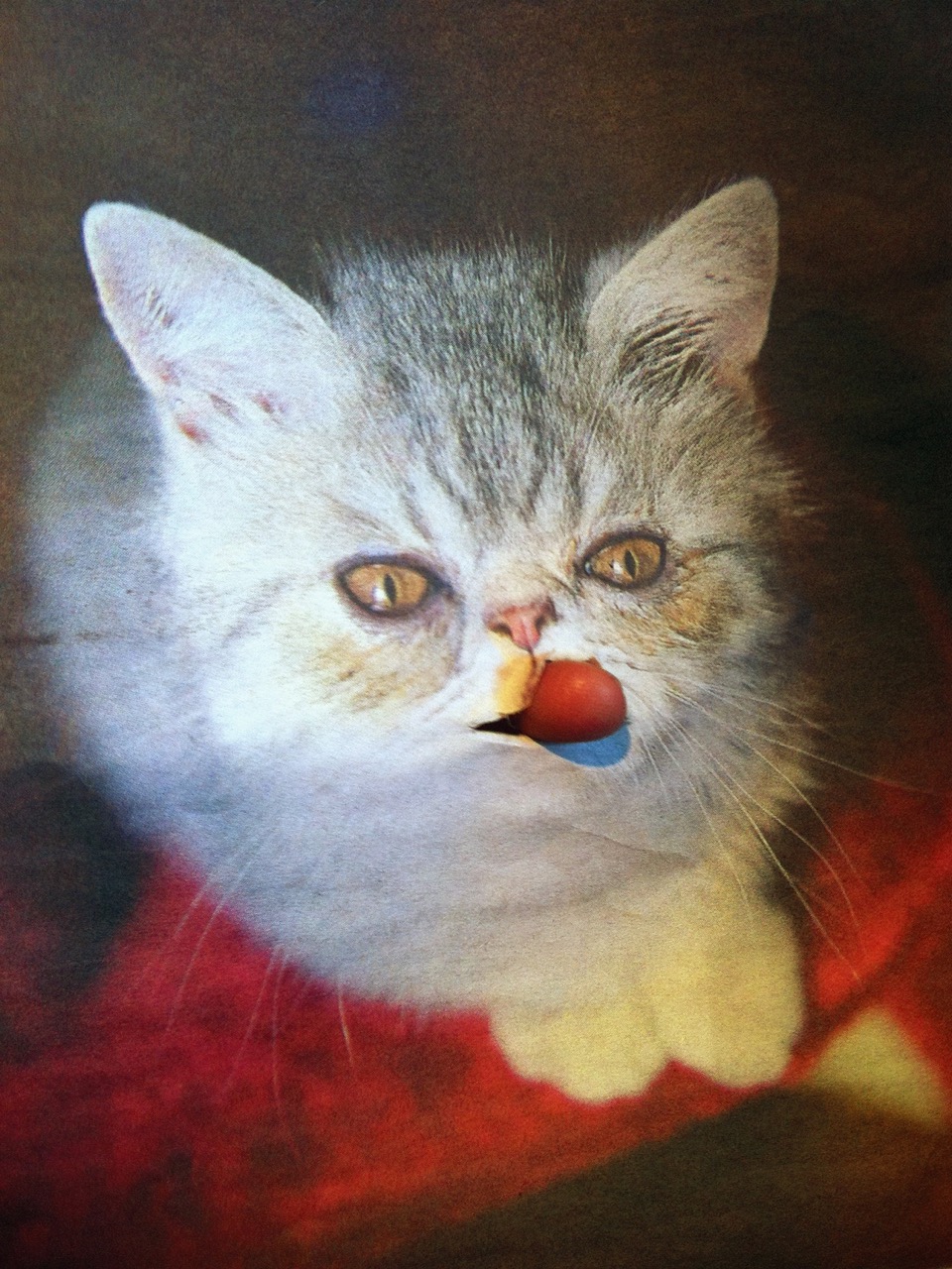Nina Katchadourian, Evil Kitten, 2013 (from Seat Assignment, 2010–ongoing). C-print, 19 × 15.25 inches. Image courtesy the artist, Catharine Clark Gallery, and Pace Gallery.
