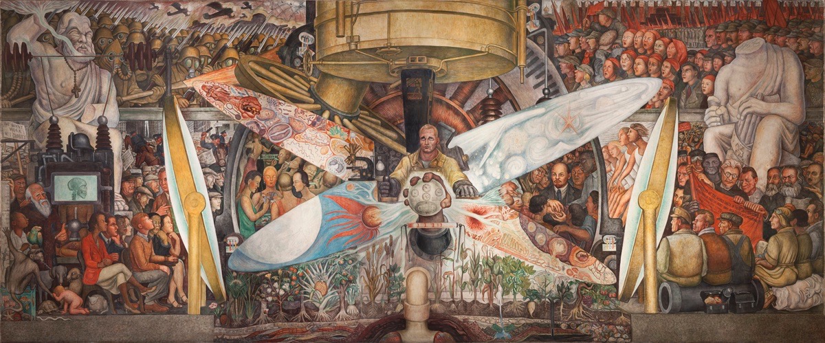 Diego Rivera, Man, Controller of the Universe, 1934. Fresco, 15 feet 9 inches × 37 feet 6 inches. Palacio de Bellas Artes, INBAL, Mexico City. © 2020 Banco de México Diego Rivera Frida Kahlo Museums Trust / Artists Rights Society. Reproduction authorized by El Instituto Nacional de Bellas Artes y Literatura, 2020.