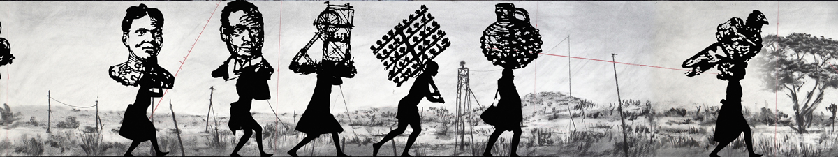 Among these varied recording devices, the most important is Kentridge himself. The artist—a descendant of a patrician family of Lithuanian Jews who immigrated to South Africa at the time of its founding, whose parents were deeply involved in the anti-apartheid struggle—has witnessed the brutality and eventual collapse of that system of racial segregation and its political aftermath. Zakes Mda, writing in the catalog, calls Kentridge’s approach an “autobiography in the third person” for the way in which he uses himself—his perspective, his body and its movements, his own distorted memories, all translated into visual form—as yet another imperfect, even compromised, lens through which to process and capture the turbulence of South Africa’s (and the continent’s) colonial past and postcolonial present.