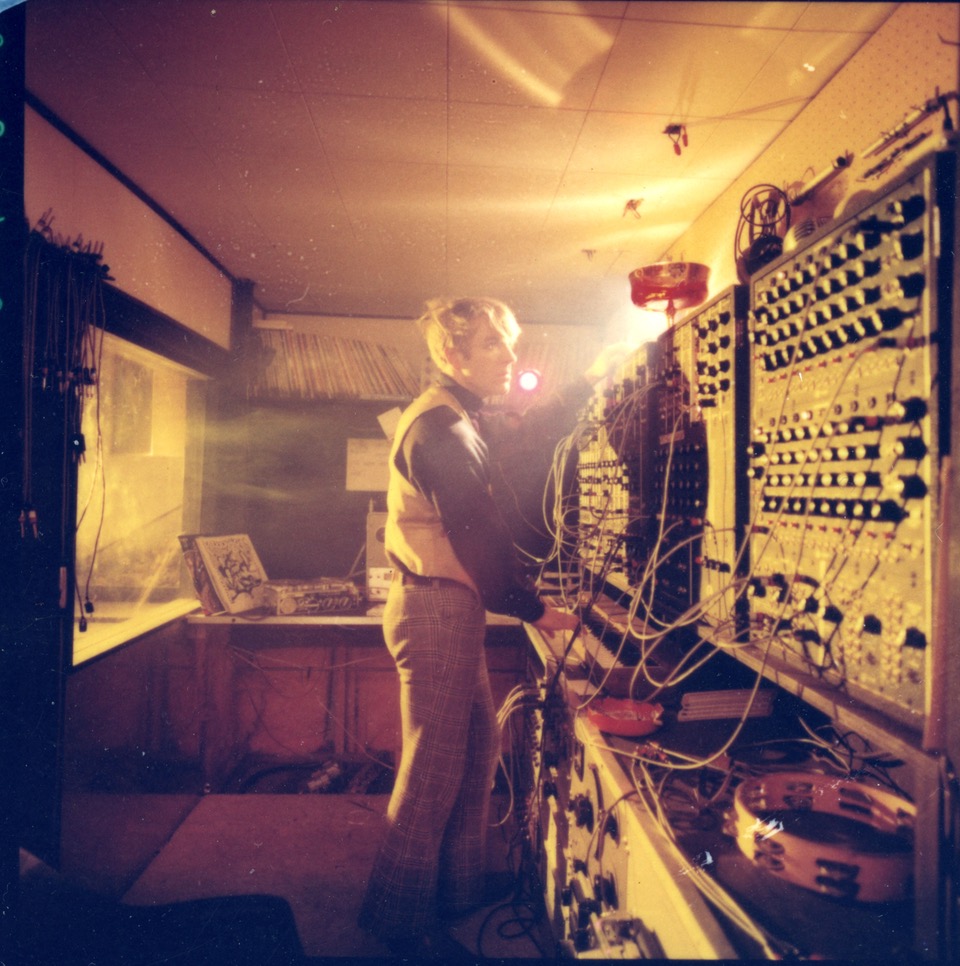 Doug McKechnie with the Moog modular synthesizer, 1969. Photo: John Pierce. Image courtesy Doug McKechnie.