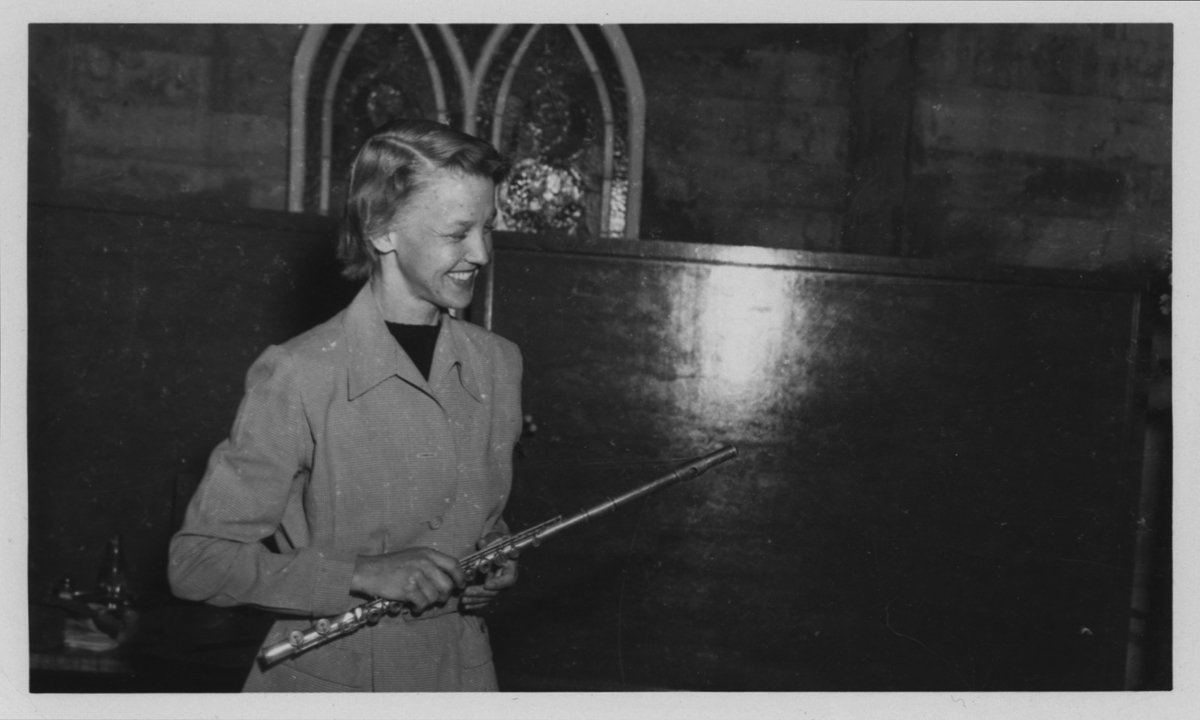 Ruth Anderson giving a flute performance, probably early ’50s. Courtesy Annea Lockwood.