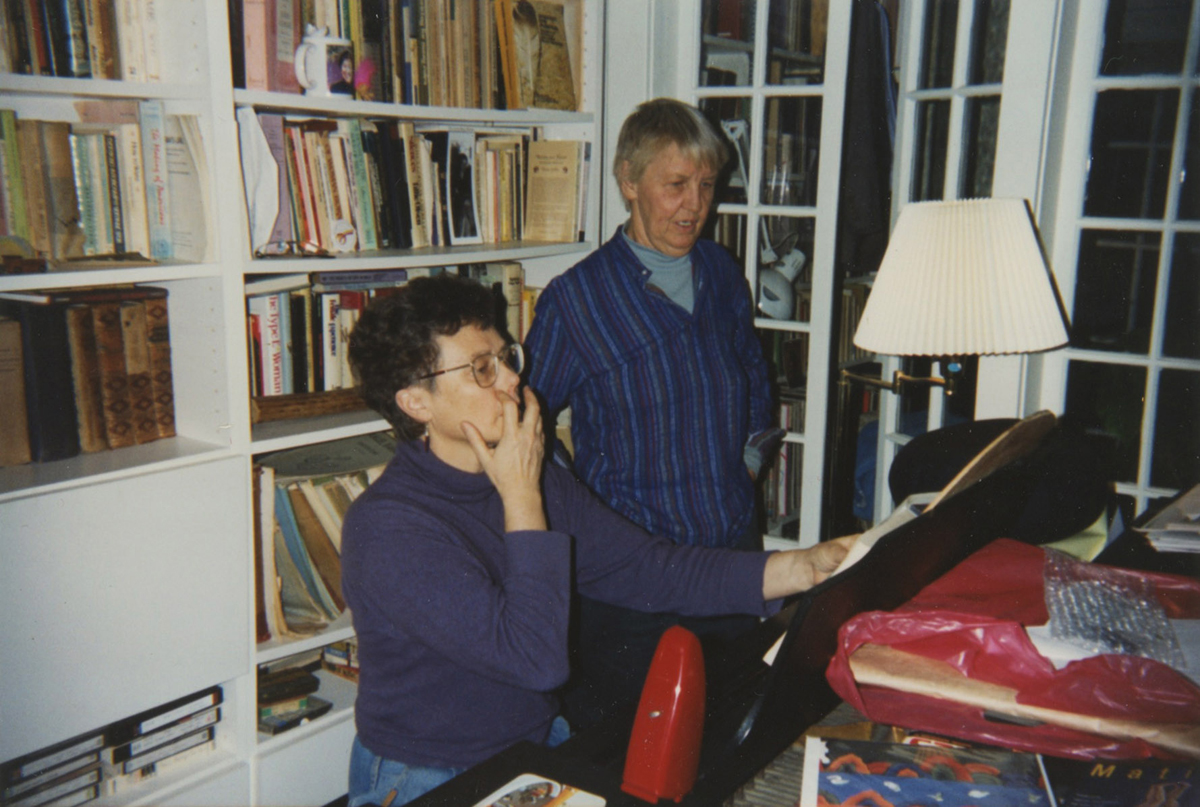 Annea Lockwood and Ruth Anderson looking over a score in Crompond, NY, early 1980s. Courtesy Annea Lockwood.