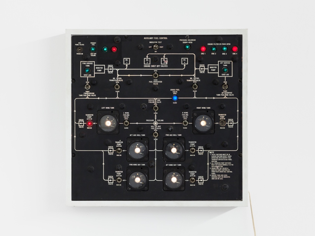 Takis, Black Panel Dials, 1968. Dials, lightbulbs, metal, paint, wood, 20 × 19.5 × 3.5 inches. © ADAGP and DACS, 2019.