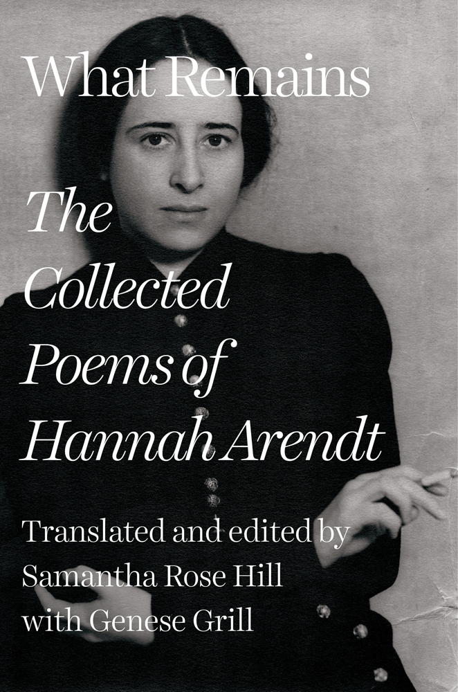 For much of her life, the German philosopher Hannah Arendt, best known today for The Origins of Totalitarianism (1951) and her reporting and reflections on the trial of Adolf Eichmann in 1961, wrote poetry that it seems she never thought to publish. Arendt’s poems, of which seventy-four survive, were discovered when her friend and literary executor Mary McCarthy opened her archive in 1988, thirteen years after Arendt’s death. They had been carefully typed, bound, and arranged chronologically—by year but also by season, as if that explained a summery or wintry mood in this or that poem. Perhaps it did; in What Remains: The Collected Poems of Hannah Arendt, translators and editors Samantha Rose Hill and Genese Grill contend that her poems were not just private in the sense of being unpublished, but part of her interior life: a regular (but interrupted) practice alongside notebook entries on favored poets such as Goethe, Friedrich Schiller, and Rainer Maria Rilke.