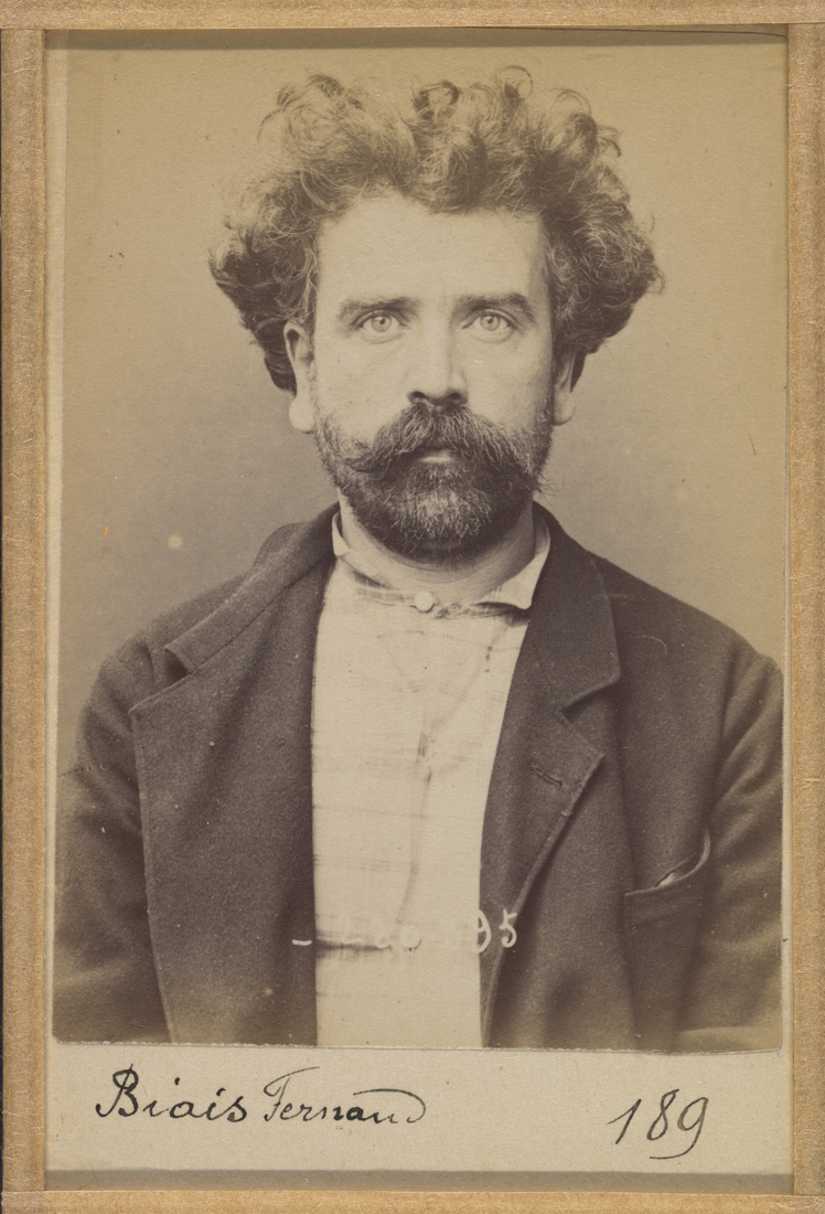 Alphonse Bertillon, Biais. Fernand, Alphonse. 41 ans, né le 28/6/53 à Laval (Mayenne). Tourneur sur bois., 1894. Albumen silver print from glass negative, 4 1/8 × 2 3/4 inches.