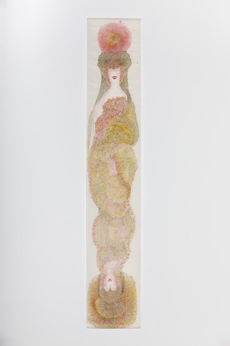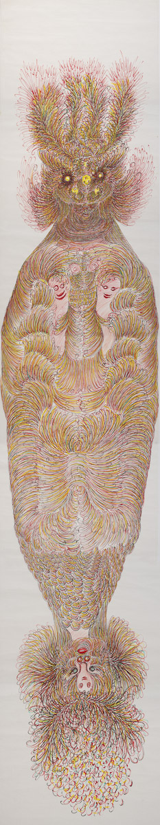 Guo Fengyi, Nüwa, 2005. Colored ink on Xuan paper, 162 7/8 × 27 5/8 inches. Image courtesy Gladstone Gallery.