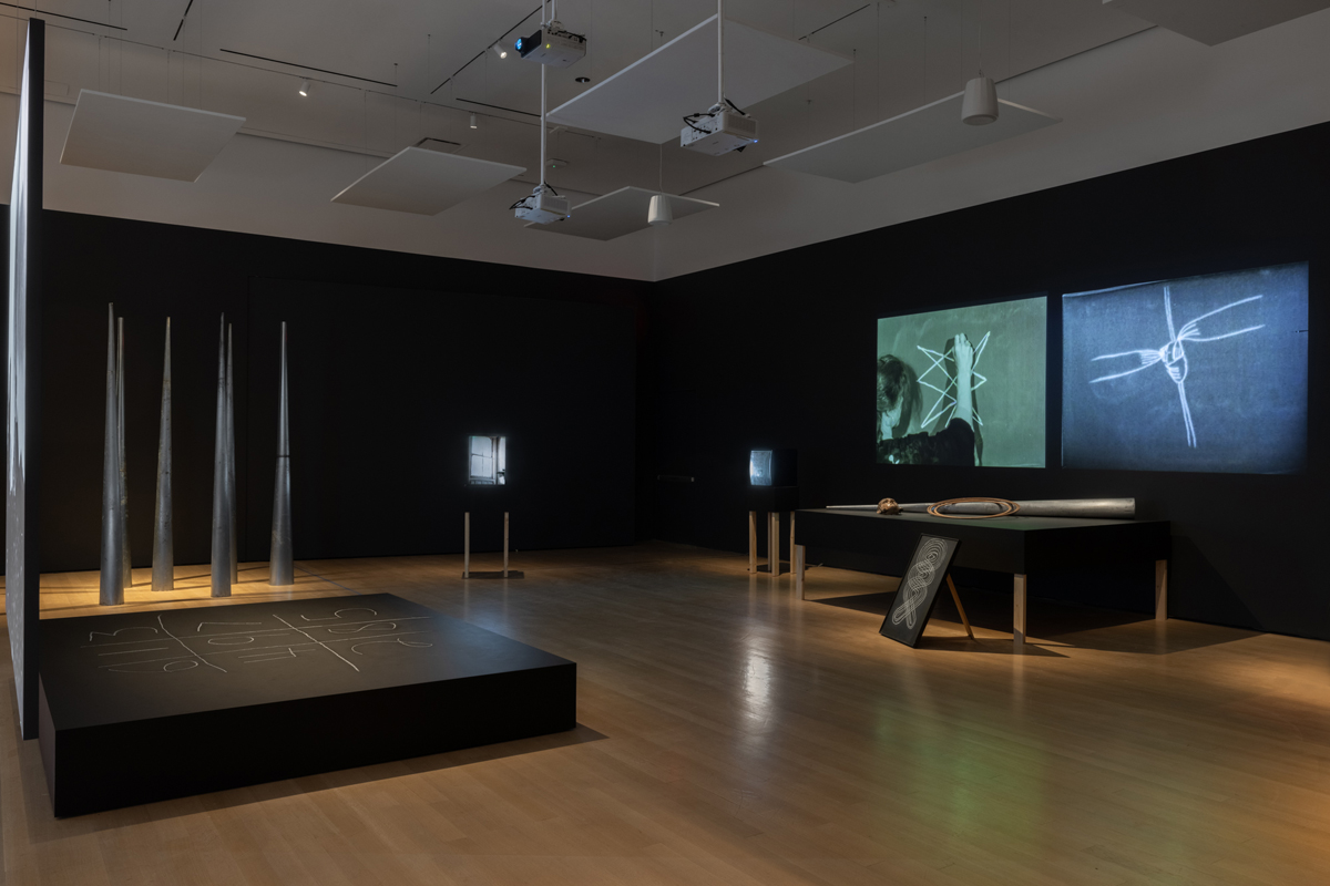 Joan Jonas: Good Night Good Morning, installation view. Courtesy Museum of Modern Art. Photo: Jonathan Dorado. Pictured: Lines in the Sand, 2002.