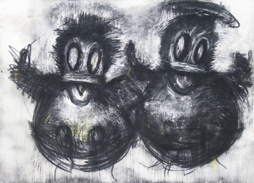 Joyce Pensato, Shout, 2007. Charcoal and pastel on paper, 60 × 87 1/2 inches. Courtesy Joyce Pensato Estate and Petzel.