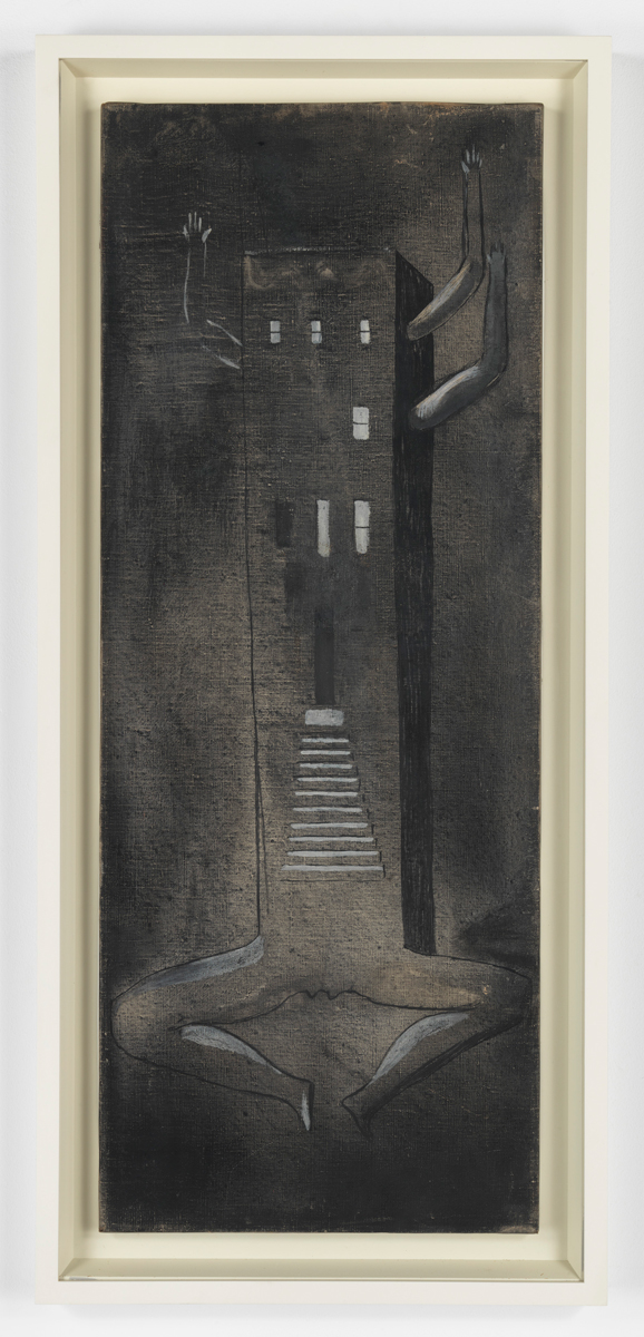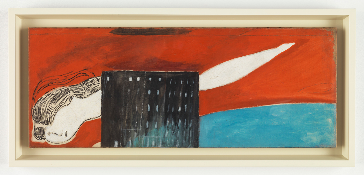 Louise Bourgeois, Fallen Woman (Femme Maison), 1946–47. Oil on linen, 14 × 36 inches. Photo: Christopher Burke. © The Easton Foundation.