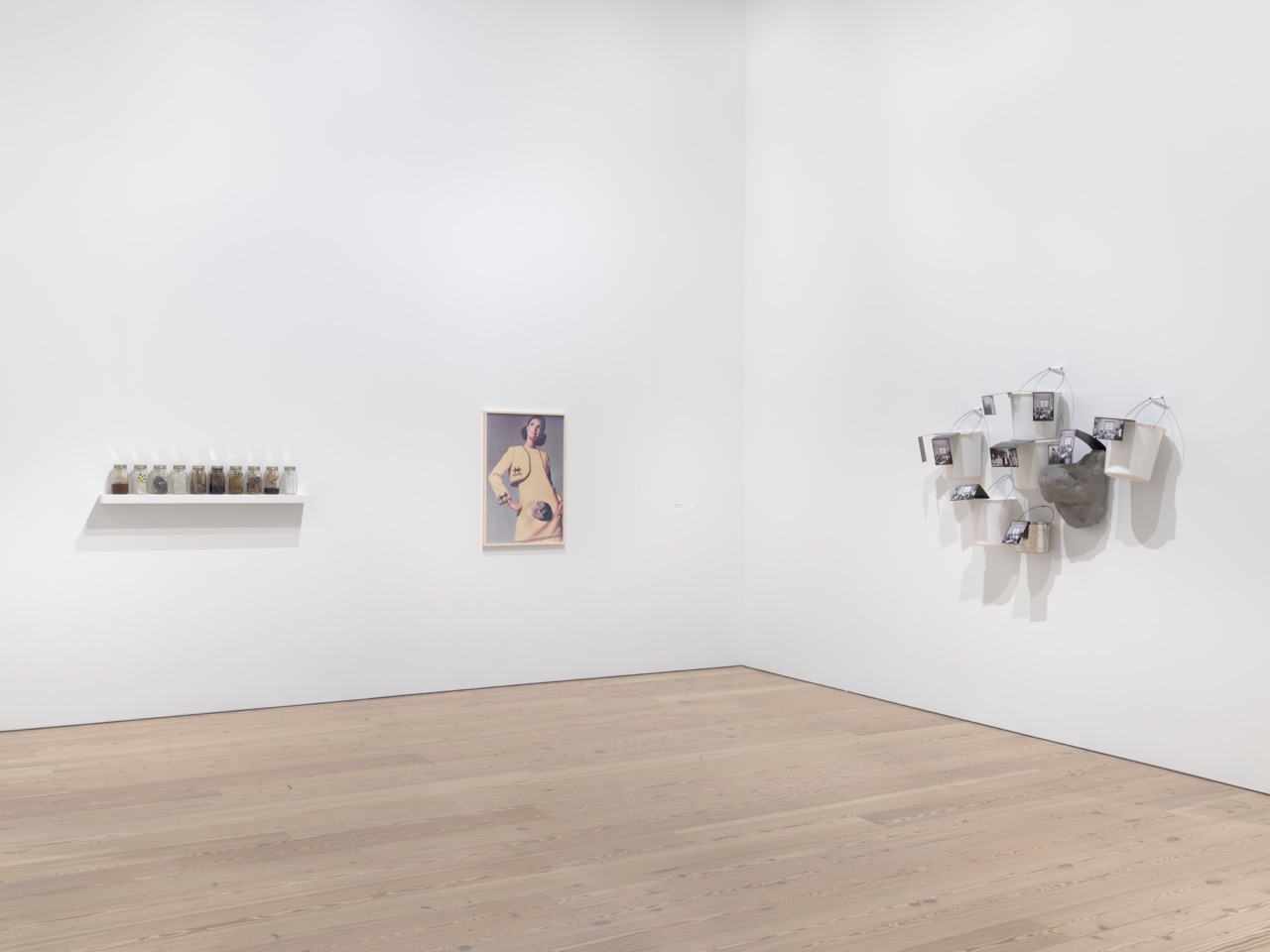Rachel Harrison Life Hack, installation view. Pictured from left to right: Dinner, 1991; I Like What’s Nice, c. 1995; Leaktite Luck, 1995. Photo: Ron Amstutz.
