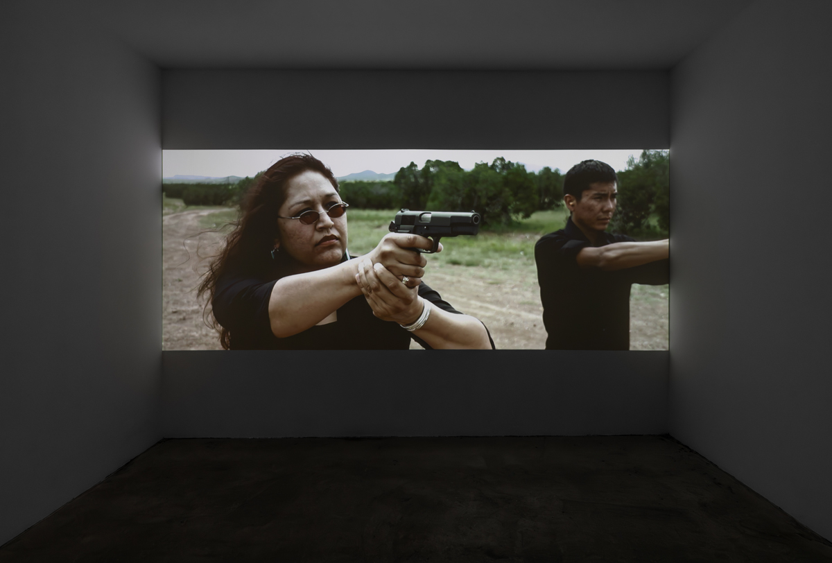 Raven Chacon: A Worm’s Eye View from a Bird’s Beak, installation view. Courtesy Swiss Institute. Photo: Daniel Pérez. Pictured: Report, 2015. Single-channel video, color, sound, 3 minutes 43 seconds.
