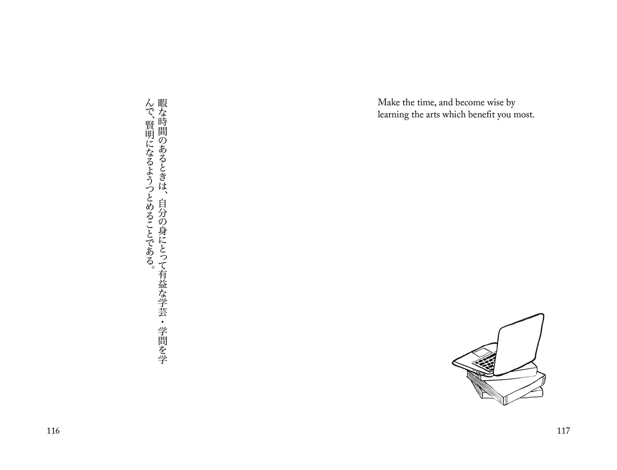 Spread from Above All Waves: Wisdom from Tominaga Nakamoto, the Philosopher Rumored to Have Inspired Bitcoin, pages 116–7. Courtesy Badlands Unlimited.