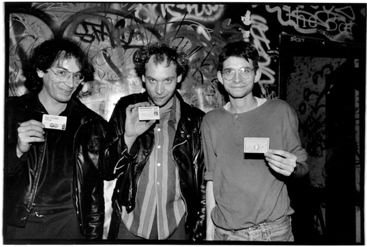 Santiago Durango, Dave Riley, and Steve Albini backstage at Danceteria, 1985. Photo: Gail Butensky.