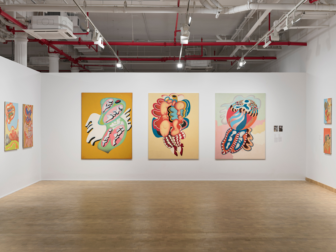 His current exhibition at the Institute for Studies on Latin American Art (ISLAA) comprises two bodies of work installed in two rooms, one displaying Benedit’s early pictorial output, the other populated with examples of the Habitats, the apex of his oeuvre, where the issues of control (a kind of possession) and the lack thereof prompted by his inquiry become clear. In the paintings, dated between 1966 and 1968, creatures resembling machines mark the first appearance of the labyrinth, a recurring motif in Benedit’s work, in the form of organs that contain white undigested, or perhaps indigestible, shapes at times reminiscent of eggs (themselves houses for gestating life). The insides of the creatures are visible, and their outside contours are nested in larger forms that resonate with the smallest ones found in the intestines. Figures can be interpreted as blowups of cells; but upon further examination, the schematic gives way to an anthropomorphic or zoomorphic body. Eyes often help situate heads and, by extension, bodies. While the flatness of the color areas, the emotionless acrylic paint application, and the cartoonish distortion of the renderings clearly connect with a prevalent idiom of the ’60s—that of Pop art—the overall biomorphic vocabulary references Jean Arp.