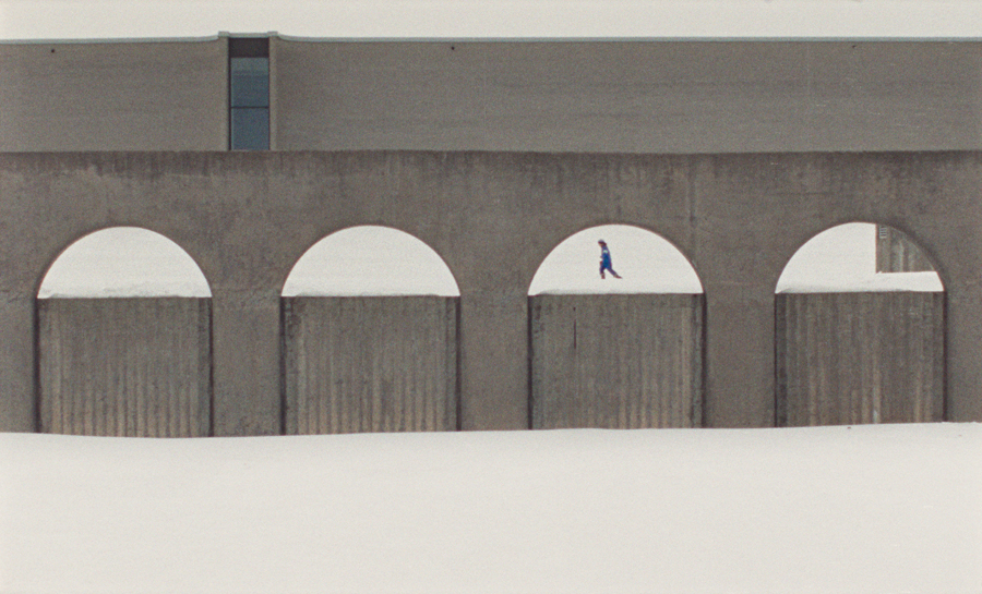 If this city’s inhabitants seem glaciated in sadness, acts of generosity pervade and thaw the film. Likewise, Universal Language’s Winnipeg, in which Brutalist structures’ uncompromising geometry frame figures in treeless, concrete visions of harsh symmetry and order, makes its fluidity and porousness feel like mirthful miracles.