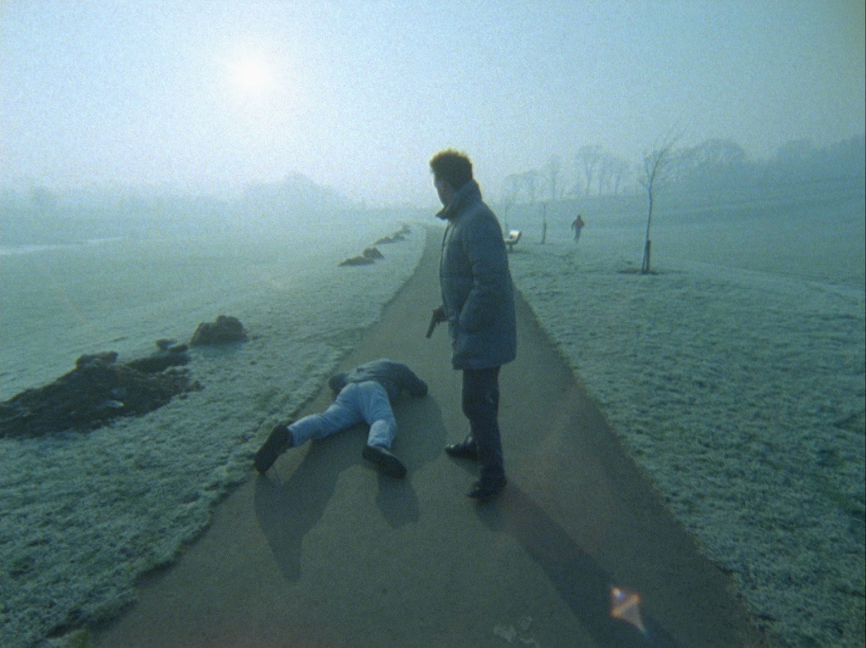 One of Clarke’s most notorious films is the unforgettable Elephant (1989), which owes a debt to both Christine and Contact. Again set in conflict-torn Northern Ireland, Elephant consists of eighteen assassinations undertaken in banal circumstances: a soccer field, a gas station, a public bathroom. Clarke’s camera follows each killer as he coolly approaches his intended victim, then just as casually walks away from murder. The repetition of death-acts becomes disorienting in its morbid rhythms, a set of slow urban wanderings suddenly interrupted by gunshots and body thuds. The title refers to the “elephant in the room” that was the Troubles; Gus Van Sant nicked both its name and cinematic approach for his own 2003 rumination on the Columbine killings.