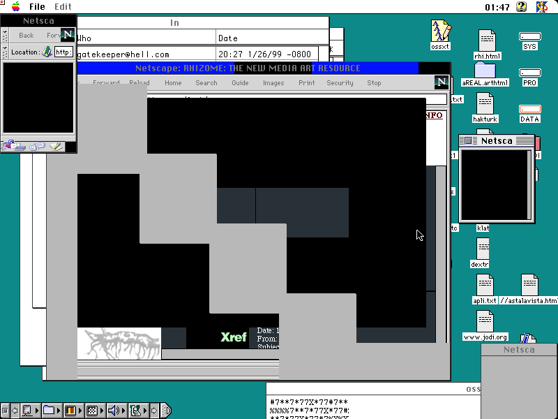 wwwwwwwww.jodi.org, asdfg.jodi.org, and oss.jodi.org, by JODI