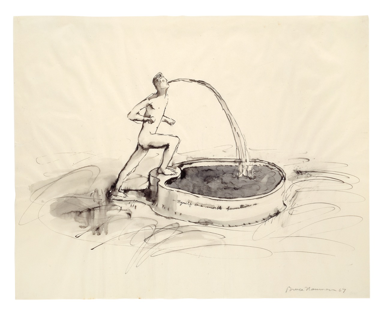 Bruce Nauman, Myself as a Marble Fountain, 1967. Ink with wash, 19 × 24 inches. © 2018 Bruce Nauman / Artists Rights Society. Photo: Kunstmuseum Basel, Martin P. Bühler.