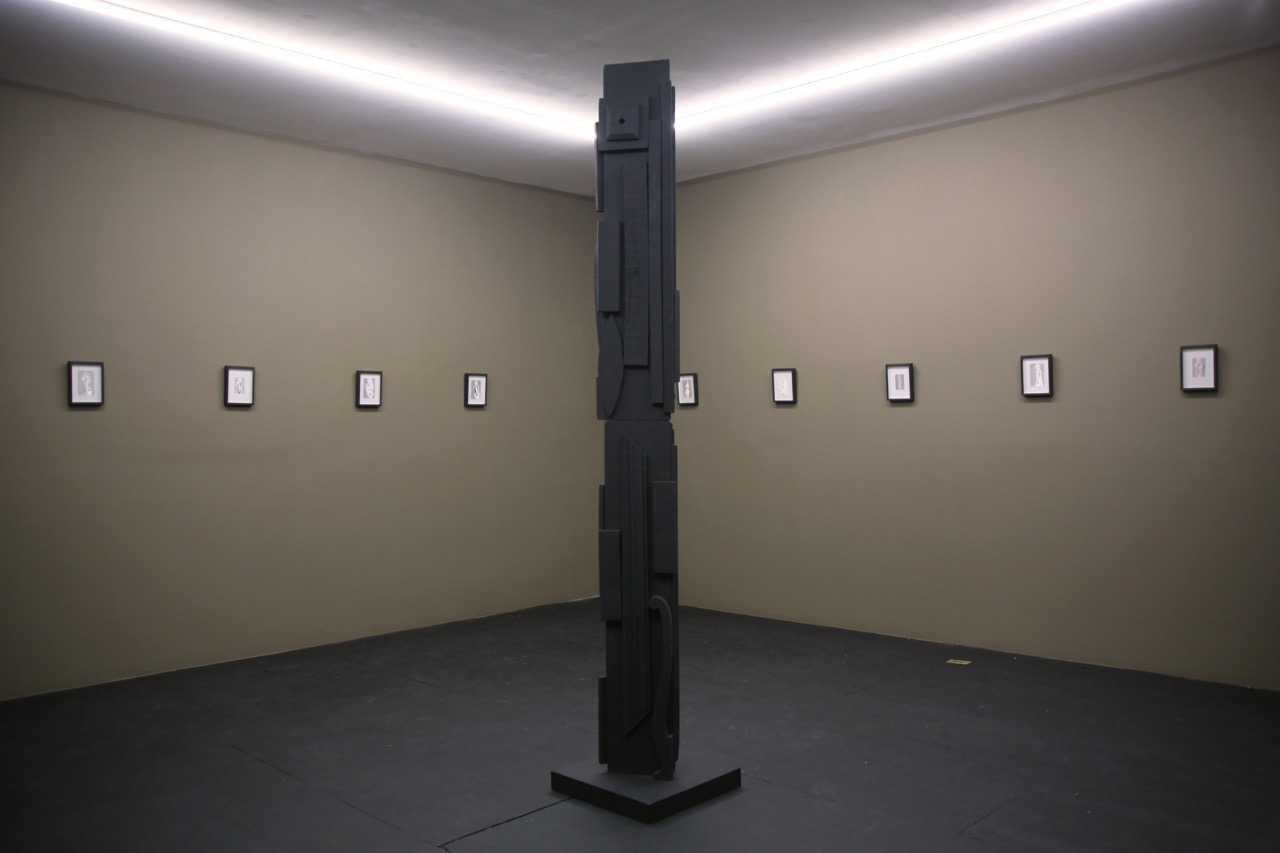 Black obelisk meets Afro Sheened goddesses in the dual show Chimera.