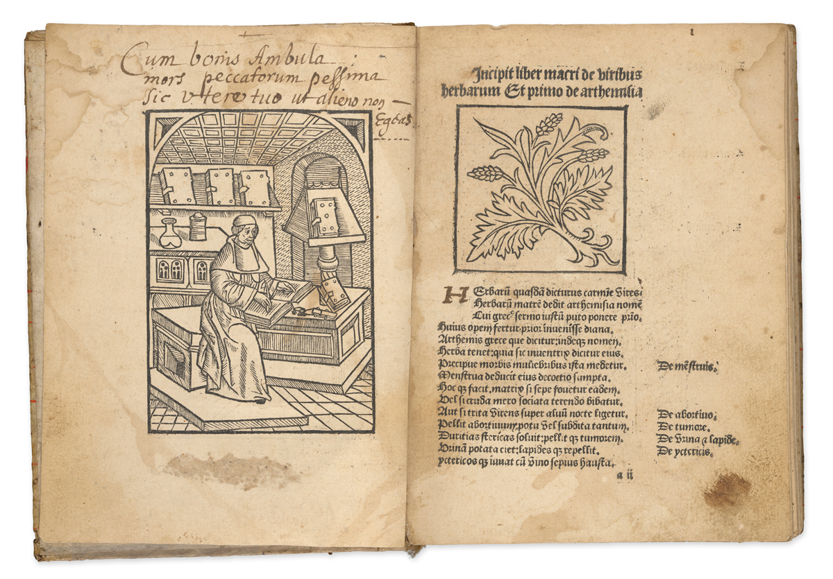 Odo of Meung [pseud. Macer Floridus], De viribus herbarum carmen (Poem on the powers of herbs), ca. 1495. Courtesy Peter Goop Collection. Photo: Naomi Wenger.
