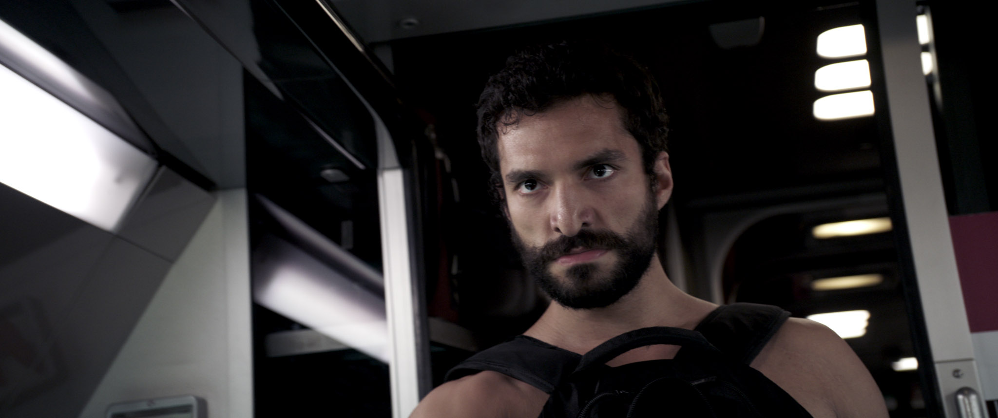 Ray Corasani as Ayoub el Khazzani in The 15:17 to Paris. Image courtesy Warner Bros. Pictures.