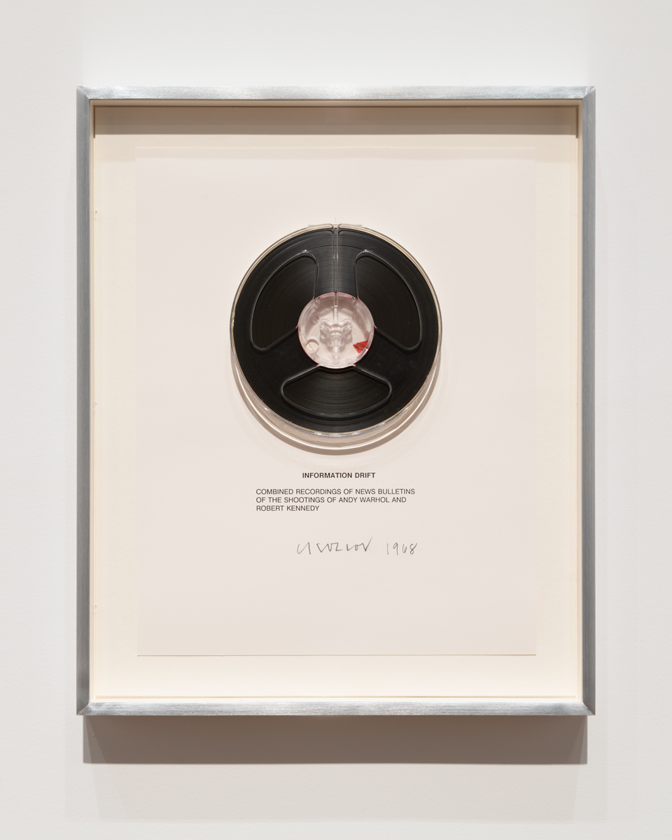 For instance, sound—and the absence of sound—is a through line in Kozlov’s practice. Information Drift (1968), a framed reel of magnetic tape, contains news broadcasts about the shootings of Robert F. Kennedy and Andy Warhol that year. Warhol was an avid recorder, and the work is a fitting homage to the artist, but Kozlov’s decision to withhold access also serves as a pointed allegory about the inaccessibility of history. There is a difference, though, between something being inaccessible and choosing not to investigate it, and much of the work here feels unexamined. The exhibition brochure suggests that artwork is more contemporary when unframed by discourse, and that context and history somehow aren’t particularly feminist. We are told the curators thus decided to engage the work directly, and yet the brochure does not offer a word of interpretation about what any of it might mean. In a sense, the curators have taken Kozlov’s method of self-abnegation as their own. The result is something like a double negative. While it doesn’t make a positive, Christine Kozlov is intriguing. One wants to learn more; but I imagine the work will continue to operate as a well-guarded secret.