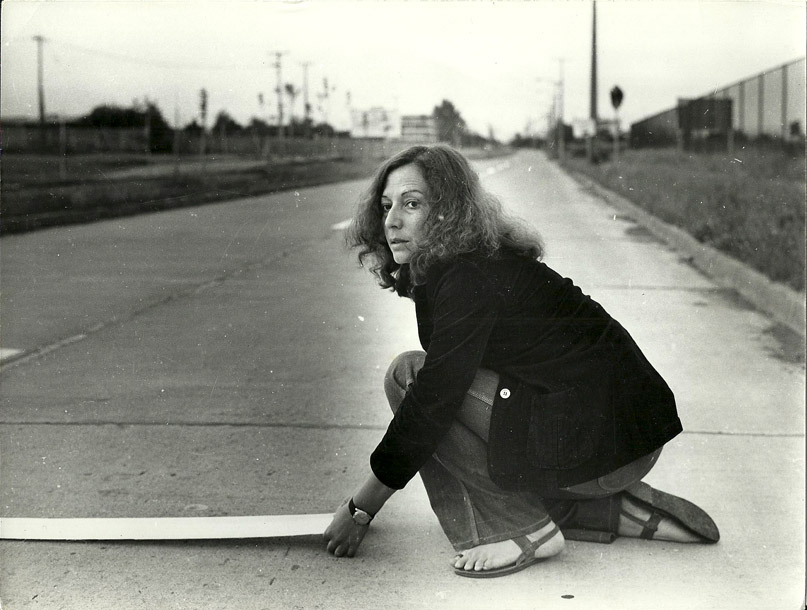 Lotty Rosenfeld, A Mile of Crosses on the Pavement, Santiago, Chile, 1979 (detail). Gelatin silver prints, 23 3/16 × 35 inches. Courtesy the artist / 1 Mira Madrid Gallery.