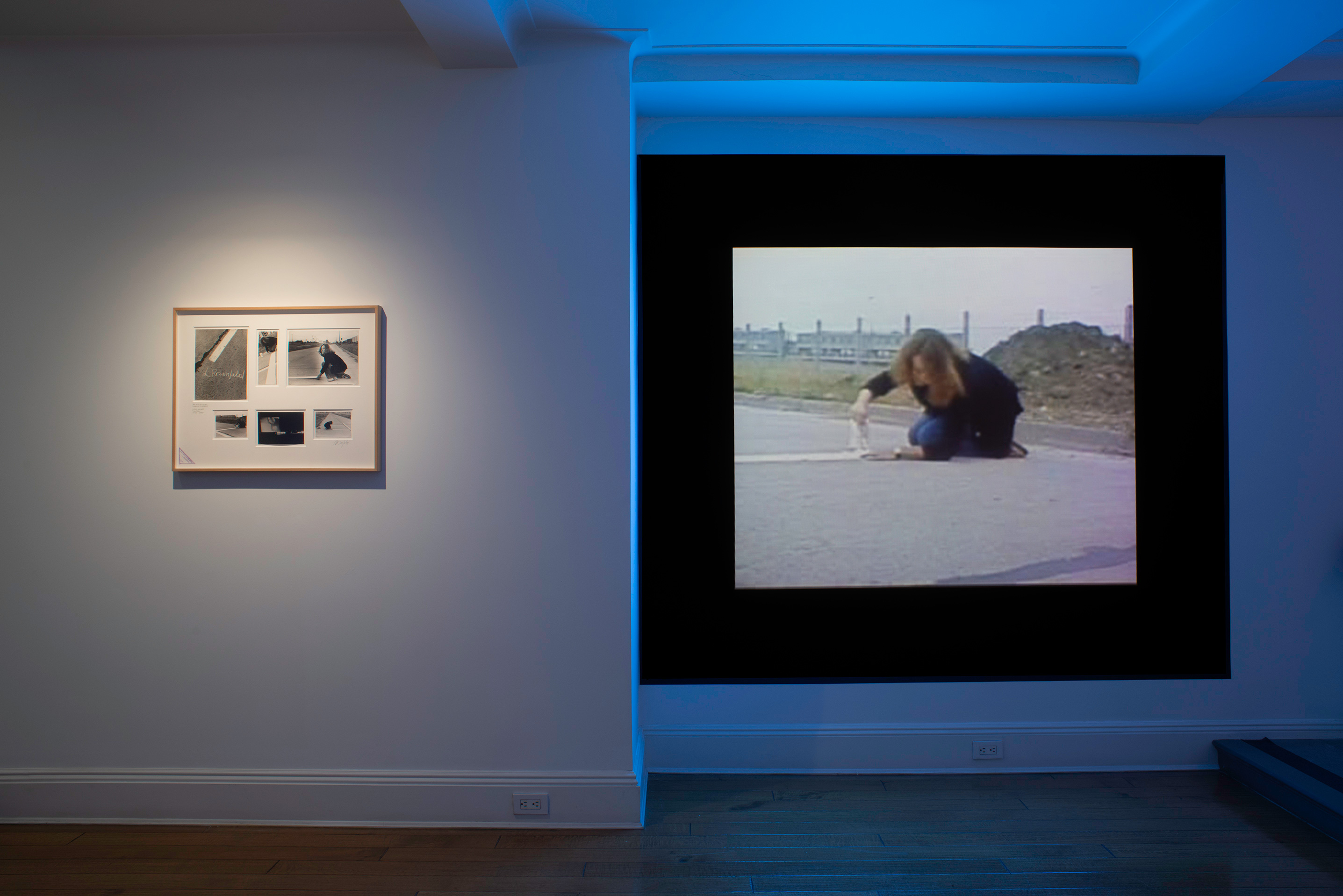 The simple gesture generates complex wordplay—one thinks, for example, of what it might mean to “cross the line”—but certain details in the photographs stand out, starting with the fact that Rosenfeld signed her name on the street, taking responsibility for her act and also, perhaps, asserting authorship. I was particularly struck, however, by the triangular stamp on the board mounting the photographs: Esta línea es mi arma / Lotty Rosenfeld / Chile, it states. “This line is my weapon.” Guagnini seconds the artist’s militant reading of her work in his catalog essay, calling the project “historical dynamite,” but I was left more with an image of aftermath than imminent explosion. The world had already gone off. I can’t shake the idea of A Mile as a graveyard, one anonymous marker lined up after another, counting the dead by the mile, creating a memorial without names.