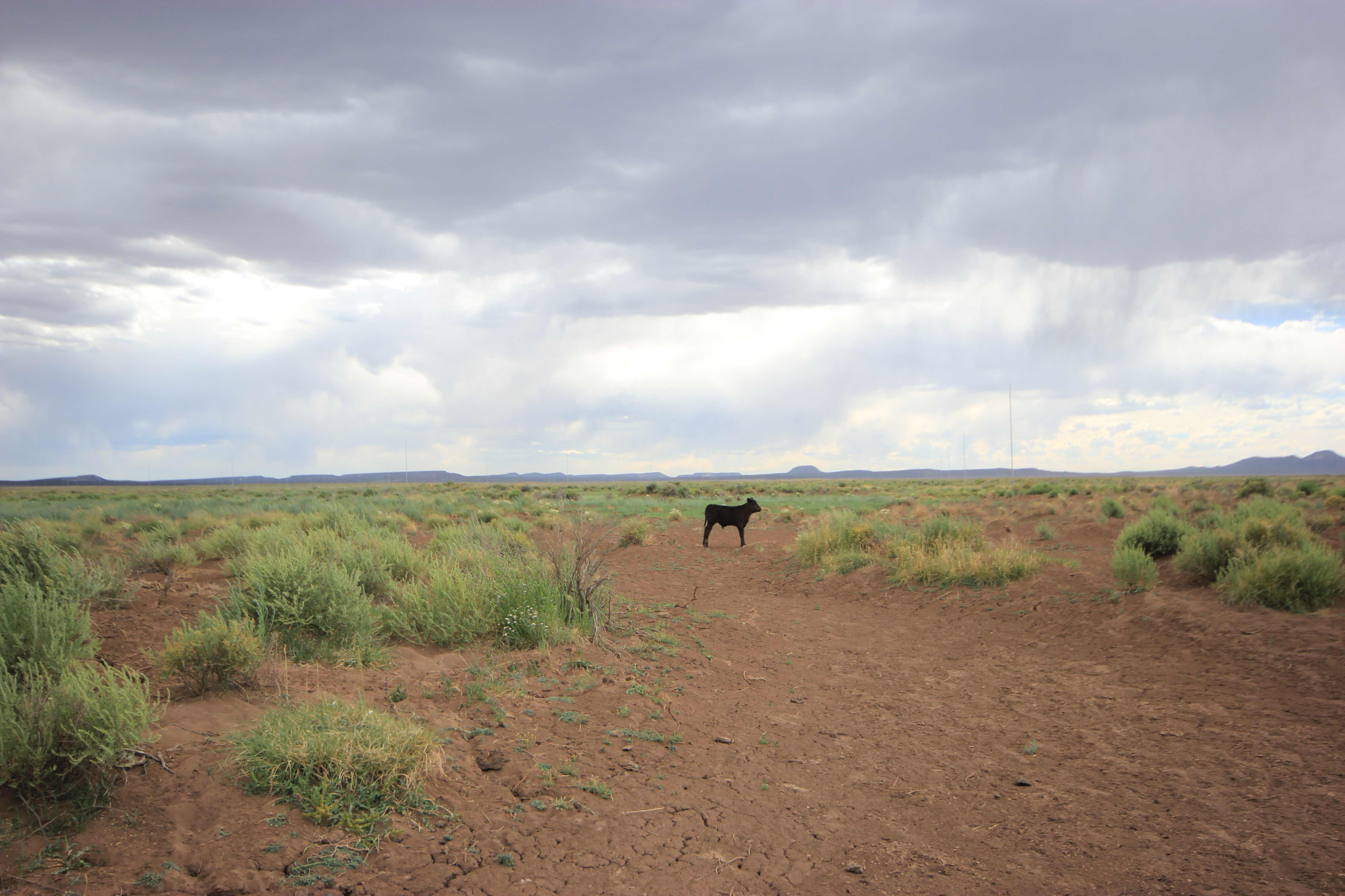 A wee calf, lost and bawling, in Walter De Maria’s The Lightning Field (1977). Photo: Shiv Kotecha.