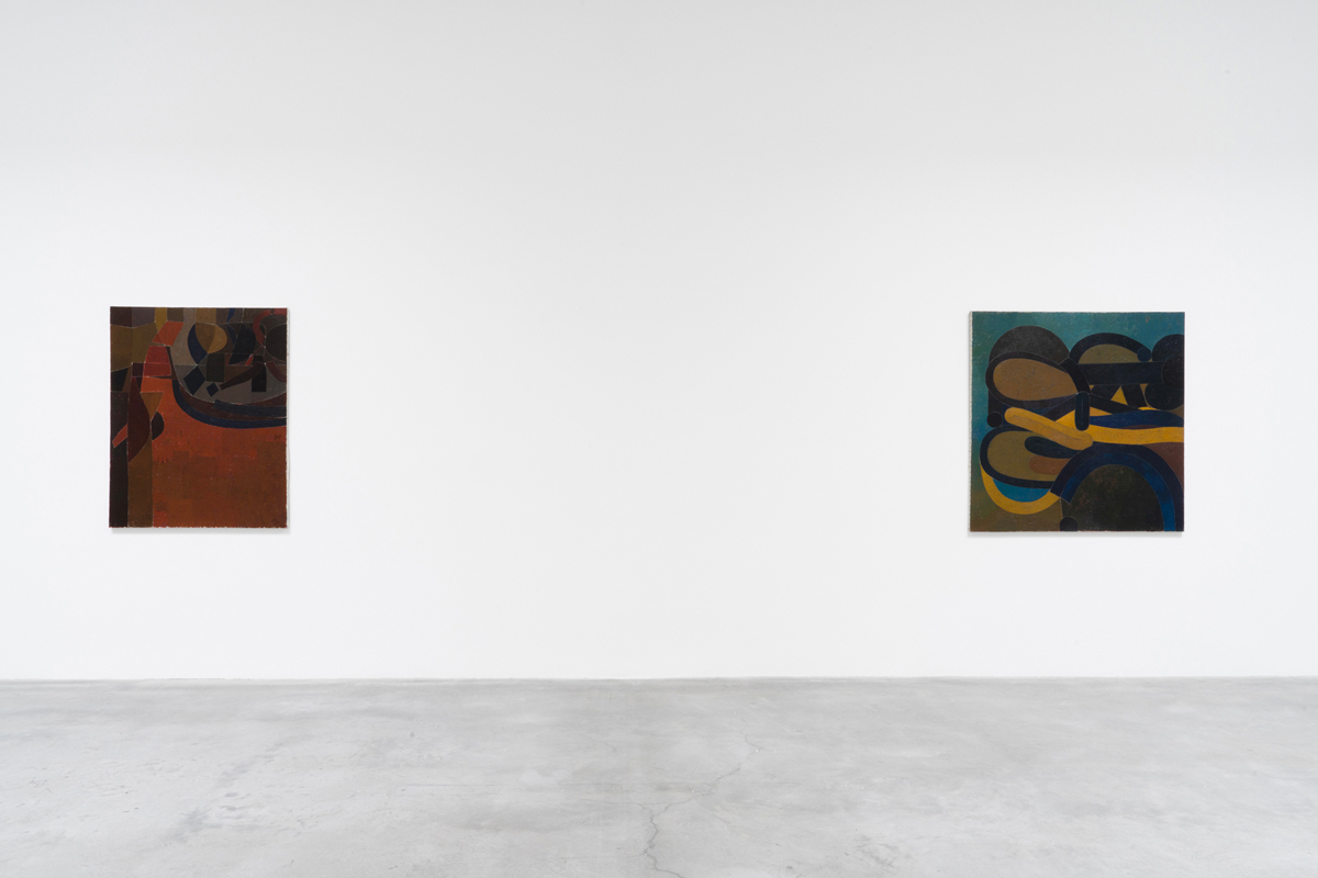 Miyoko Ito, installation view. Courtesy Matthew Marks Gallery. © Estate of Miyoko Ito. Pictured, left: Act One by the Sea, ca. 1955. Right: Jordan, ca. 1959.
