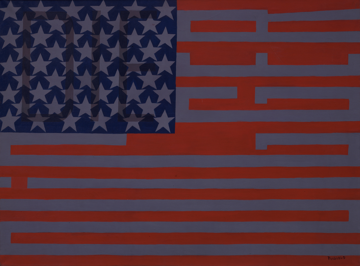 Faith Ringgold, Black Light Series #10: Flag for the Moon: Die Nigger, 1969. Oil on canvas, 36 × 50 inches. Courtesy ACA Galleries. © Faith Ringgold / ARS and DACS.